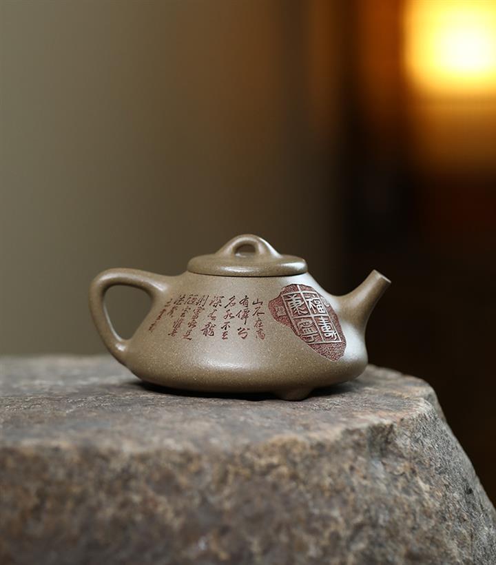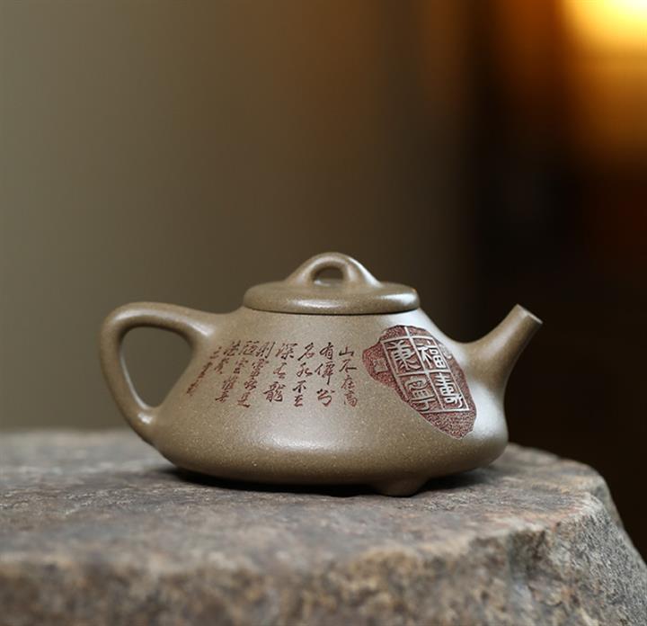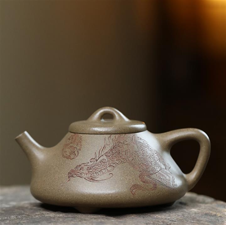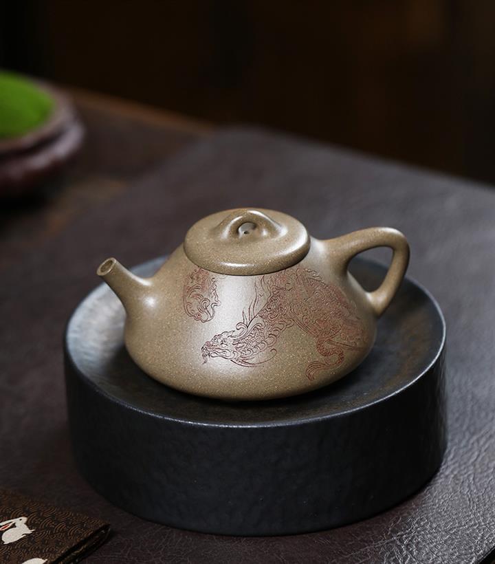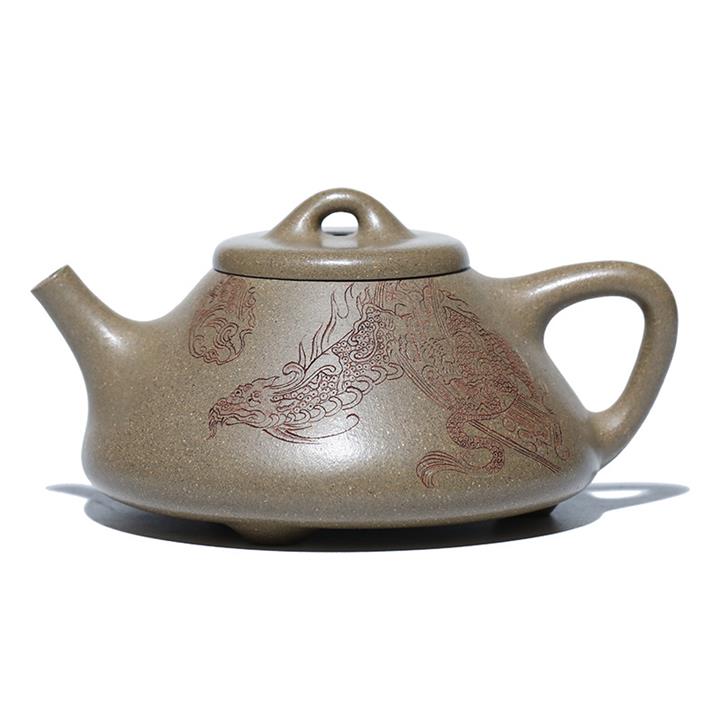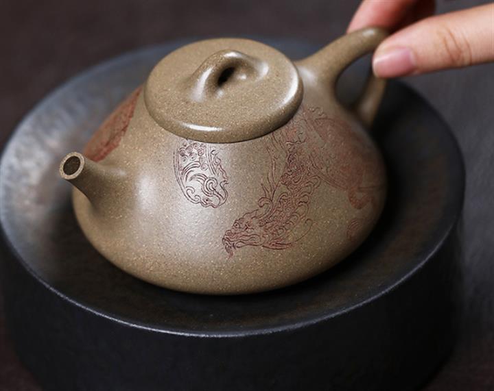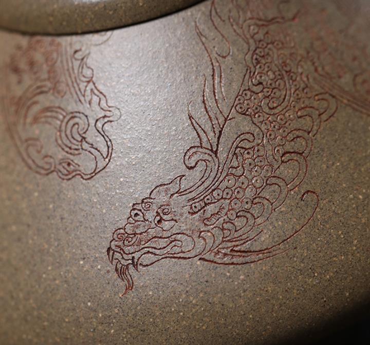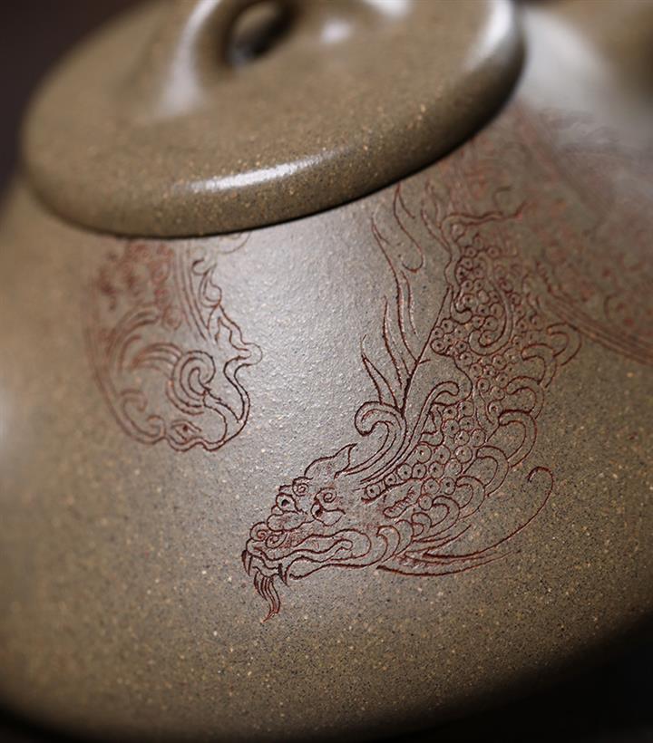 原礦墨綠泥手工刻畫山水仿古茶壺POT6930