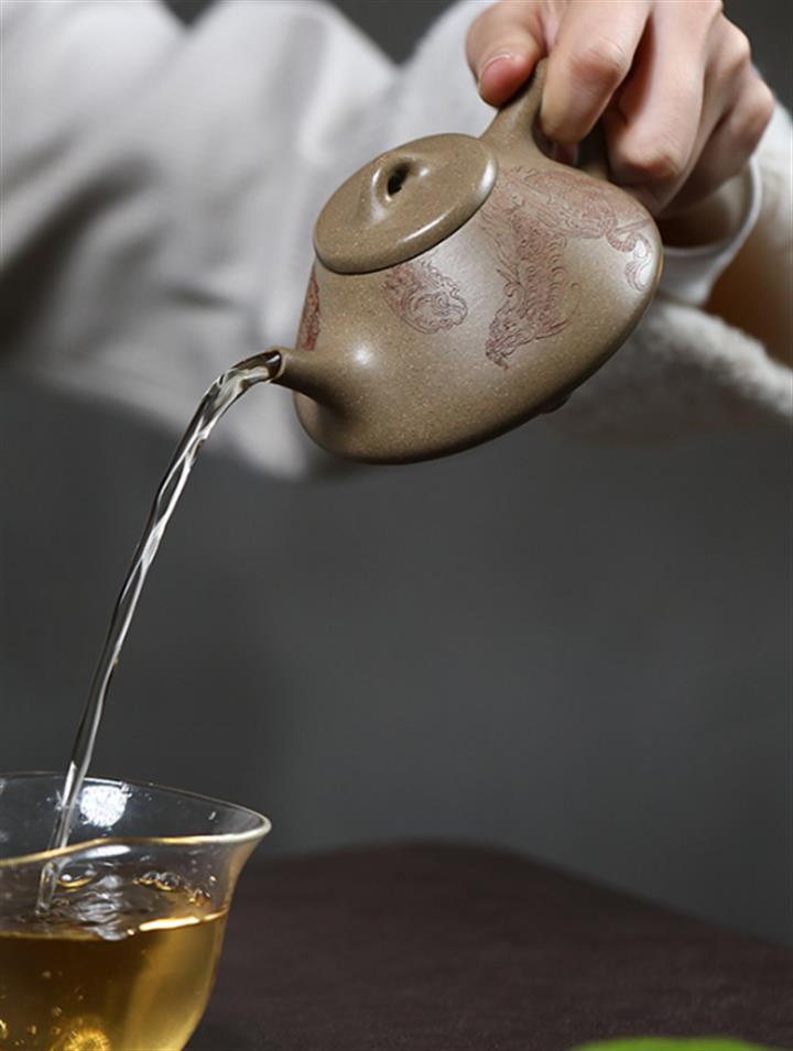 【泥料特點】砂土氣重,似淳實農民,日久使用,漸露鋒芒,養成變化,溫潤莊重。紫砂是壹種雙重氣孔結構的多孔性材質,氣孔微細,密度高。用紫砂壺沏茶,不失原味,且香不渙散,得茶之真香真味。紫砂使用越久,壺身色澤越發光亮照人,氣韻溫雅。紫砂壺長久使用器身會因撫摸擦拭,變得越發溫潤光澤。