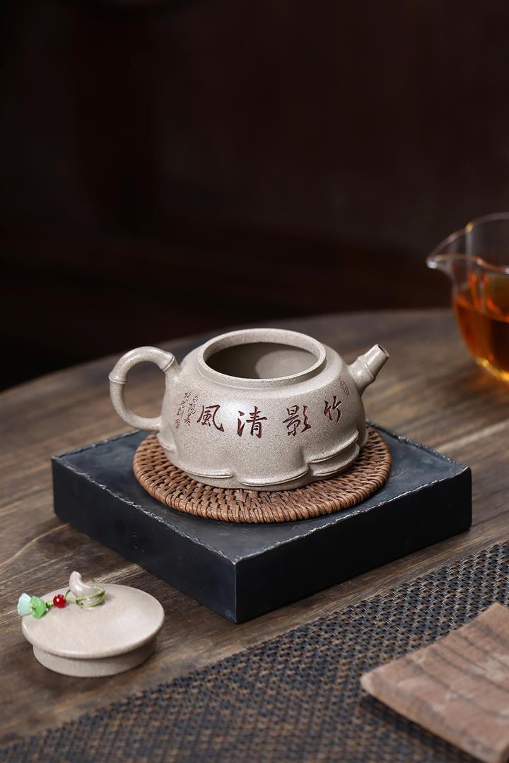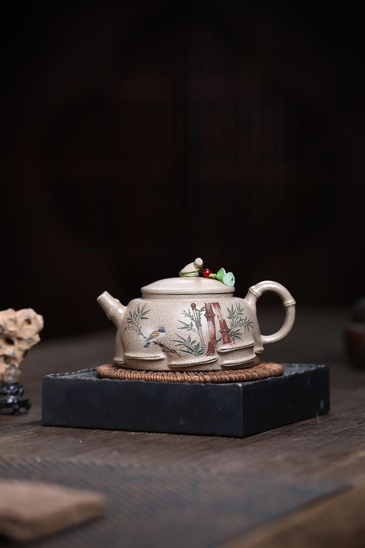 260cc原礦白段泥彩刻清風竹影茶壺POT9087