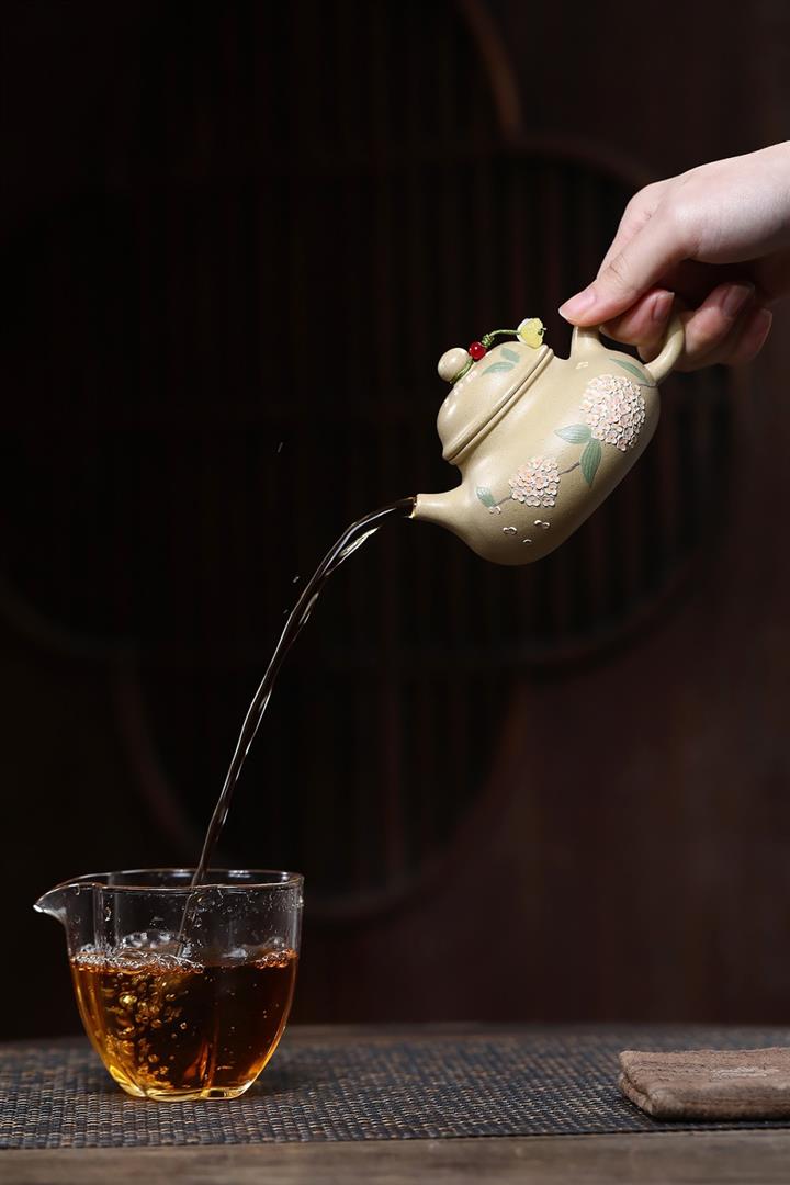 【泥料特點】砂土氣重,似淳實農民,日久使用,漸露鋒芒,養成變化,溫潤莊重。紫砂是壹種雙重氣孔結構的多孔性材質,氣孔微細,密度高。用紫砂壺沏茶,不失原味,且香不渙散,得茶之真香真味。紫砂使用越久,壺身色澤越發光亮照人,氣韻溫雅。紫砂壺長久使用器身會因撫摸擦拭,變得越發溫潤光澤。