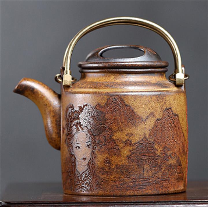 原礦黑泥刻繪鴻運當頭茶壺POT6954