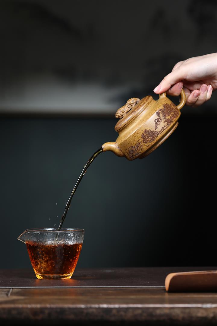 【泥料特點】砂土氣重,似淳實農民,日久使用,漸露鋒芒,養成變化,溫潤莊重。紫砂是壹種雙重氣孔結構的多孔性材質,氣孔微細,密度高。用紫砂壺沏茶,不失原味,且香不渙散,得茶之真香真味。紫砂使用越久,壺身色澤越發光亮照人,氣韻溫雅。紫砂壺長久使用器身會因撫摸擦拭,變得越發溫潤光澤。