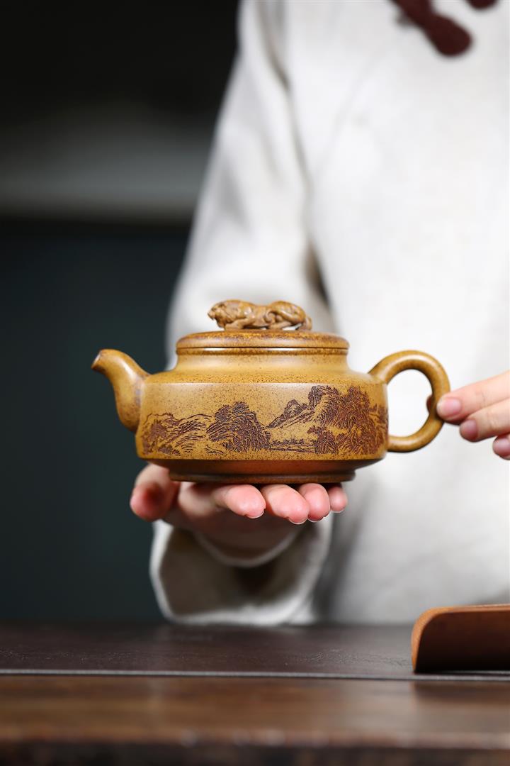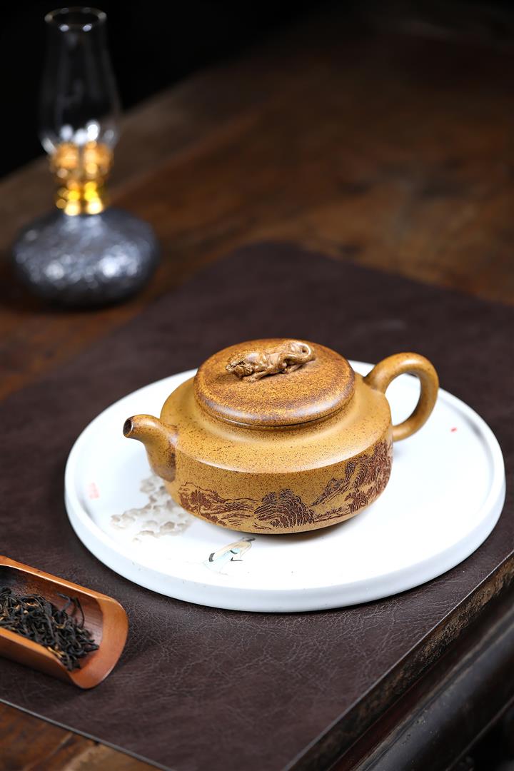 【作品介紹】此款壺形線條流暢,壺把,壺嘴,壺身壹氣呵成栩栩如生,是收藏把玩的好壺,泥料色澤古樸典雅,日久使用,漸露鋒芒,養成變化快,溫潤莊重,用其泡茶,使用的年代久,壺身就溫潤,泡出來的茶湯也就醇郁芳馨。