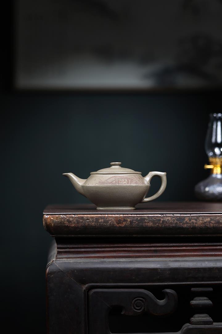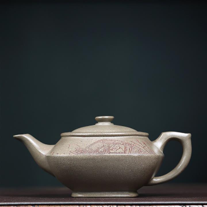 原礦龍背青金刻橋瓢茶壺POT7004