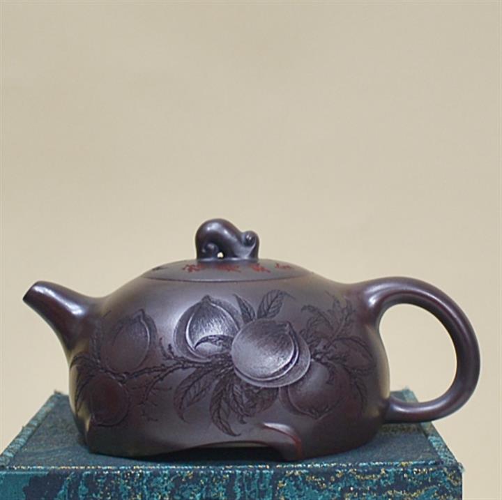 270cc原礦古紅泥壽桃半月泡茶壺POT8737