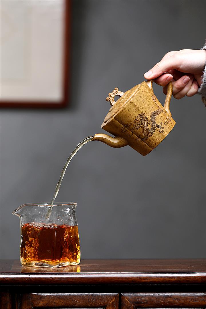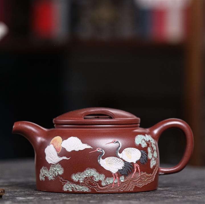 【泥料特點】砂土氣重,似淳實農民,日久使用,漸露鋒芒,養成變化,溫潤莊重。紫砂是壹種雙重氣孔結構的多孔性材質,氣孔微細,密度高。用紫砂壺沏茶,不失原味,且香不渙散,得茶之真香真味。紫砂使用越久,壺身色澤越發光亮照人,氣韻溫雅。紫砂壺長久使用器身會因撫摸擦拭,變得越發溫潤光澤。