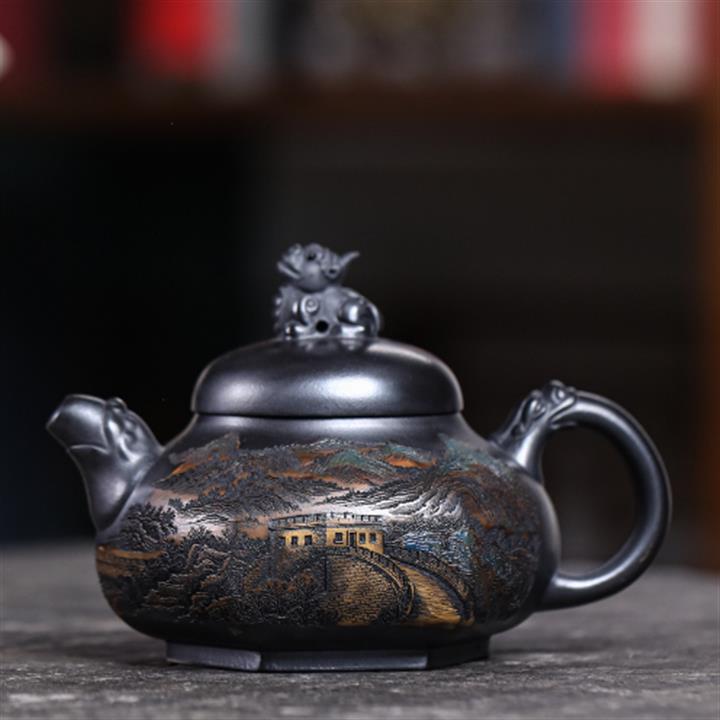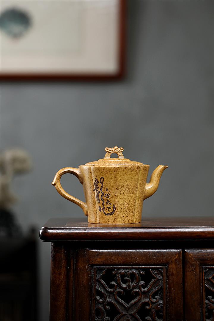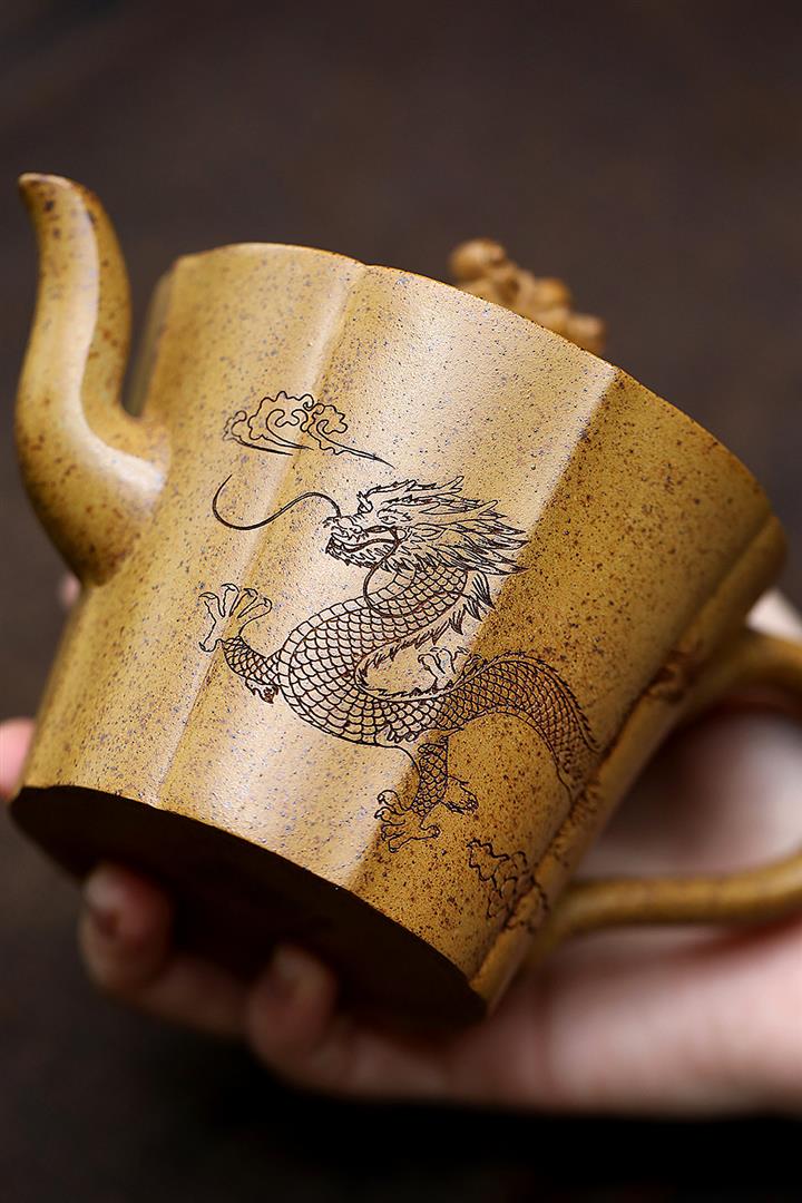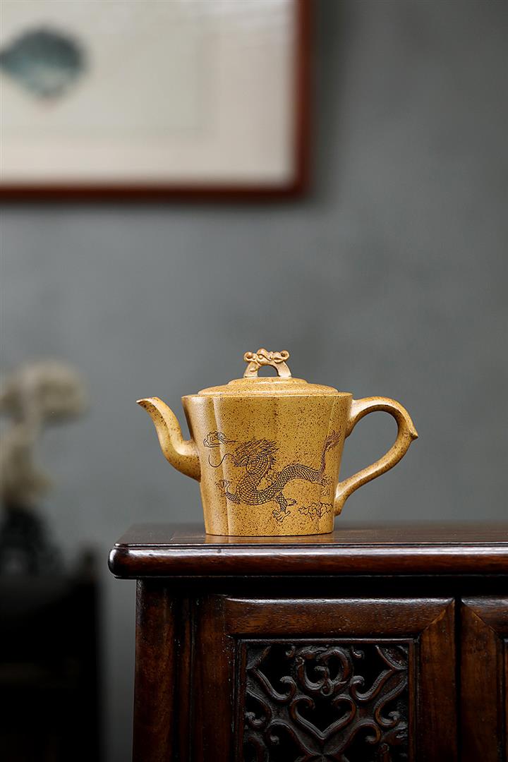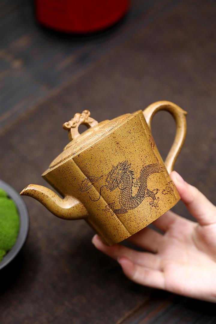 【作品介紹】此款壺形線條流暢,壺把,壺嘴,壺身壹氣呵成栩栩如生,是收藏把玩的好壺,泥料色澤古樸典雅,日久使用,漸露鋒芒,養成變化快,溫潤莊重,用其泡茶,使用的年代久,壺身就溫潤,泡出來的茶湯也就醇郁芳馨。