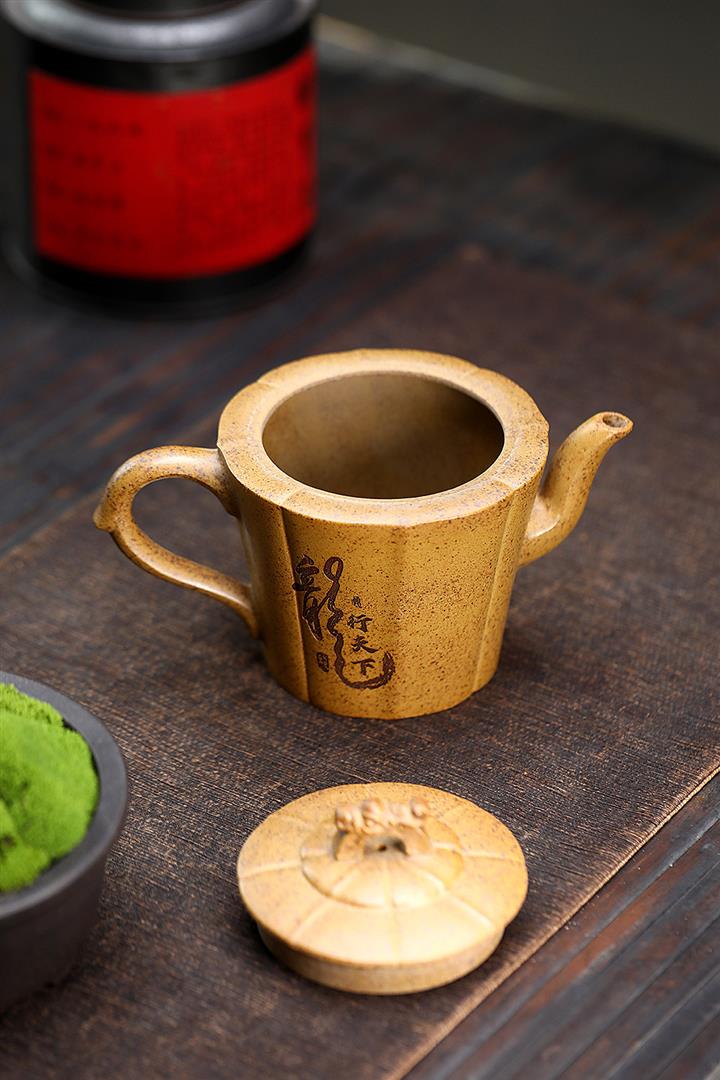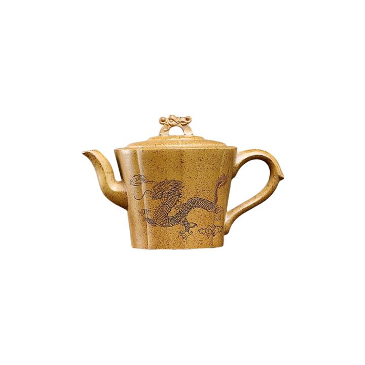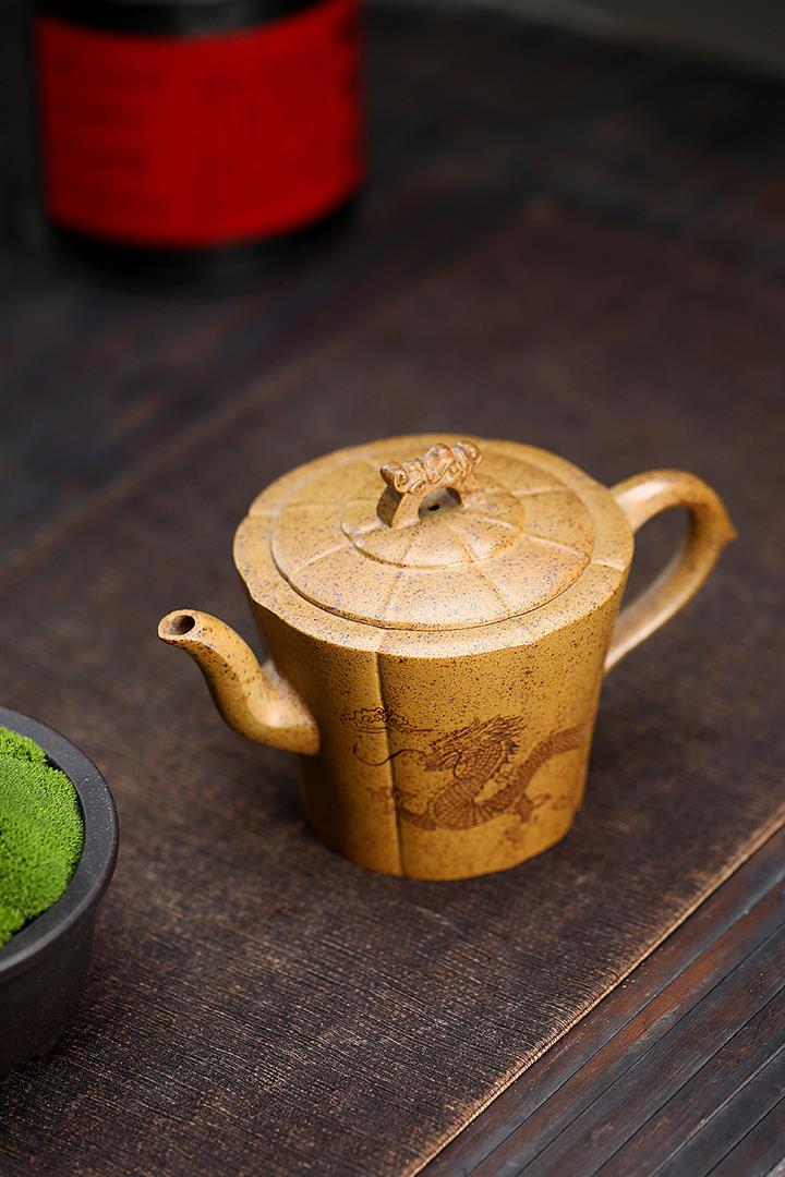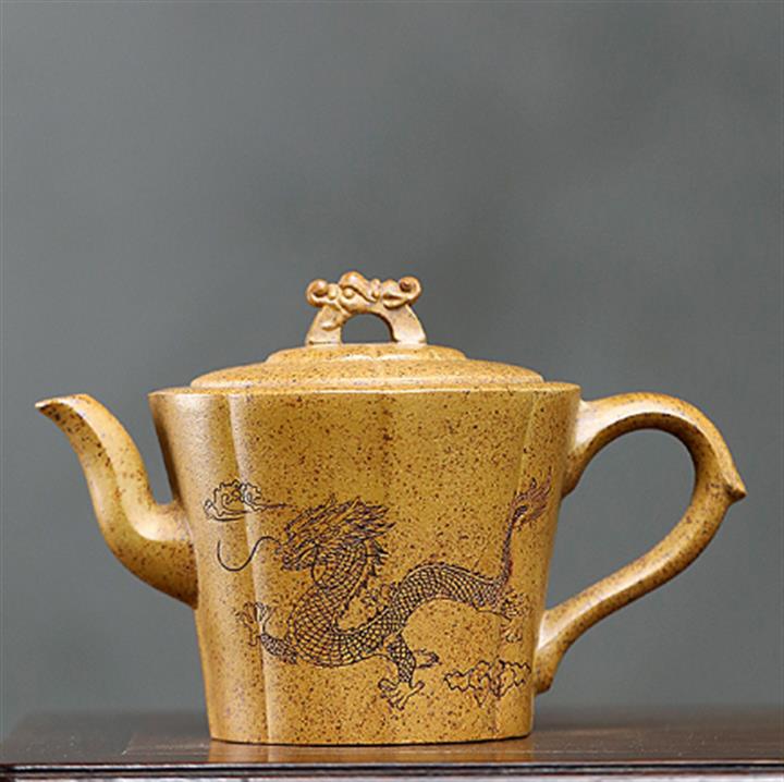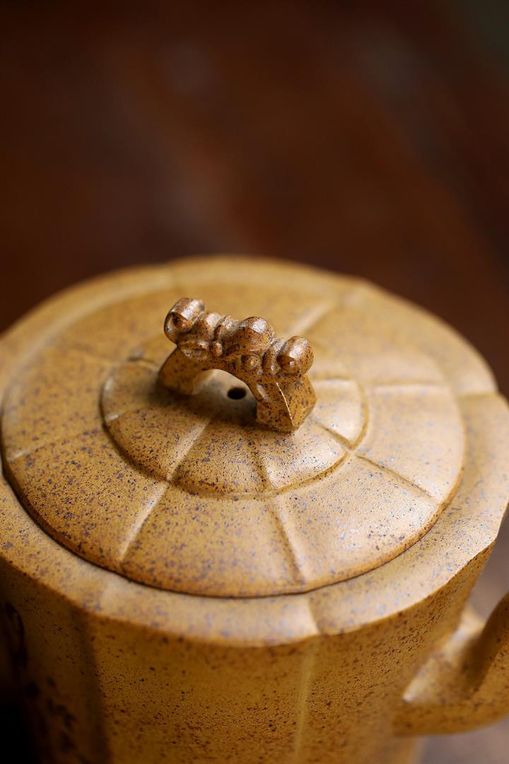 230cc原礦石黃泥彩繪六方潘壺茶壺POT8877