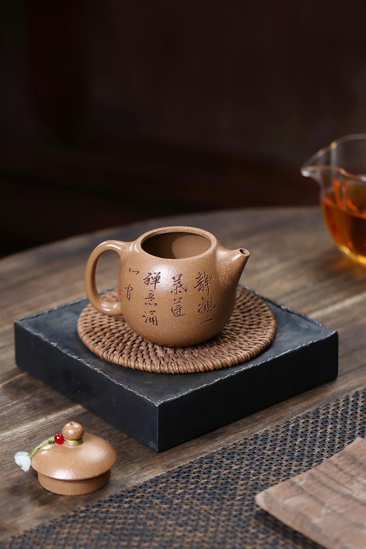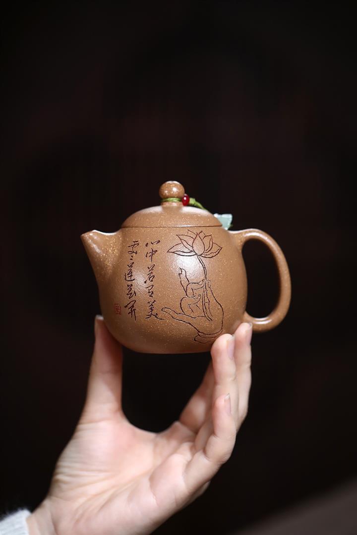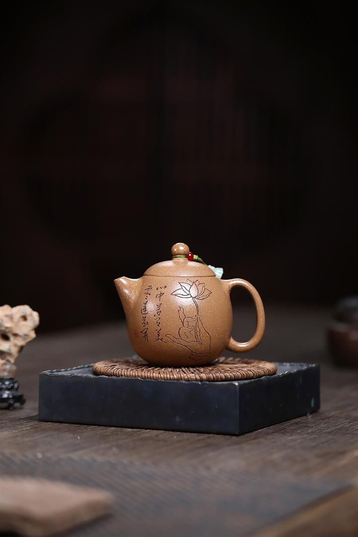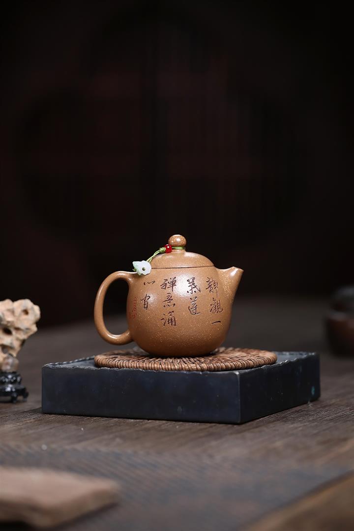 【作品介紹】此款壺形線條流暢,壺把,壺嘴,壺身壹氣呵成栩栩如生,是收藏把玩的好壺,泥料色澤古樸典雅,日久使用,漸露鋒芒,養成變化快,溫潤莊重,用其泡茶,使用的年代久,壺身就溫潤,泡出來的茶湯也就醇郁芳馨。