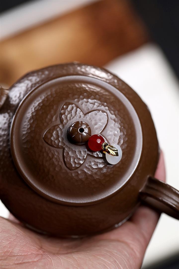250cc原礦赤金朱泥石紋蓮華泡茶壺POT9126