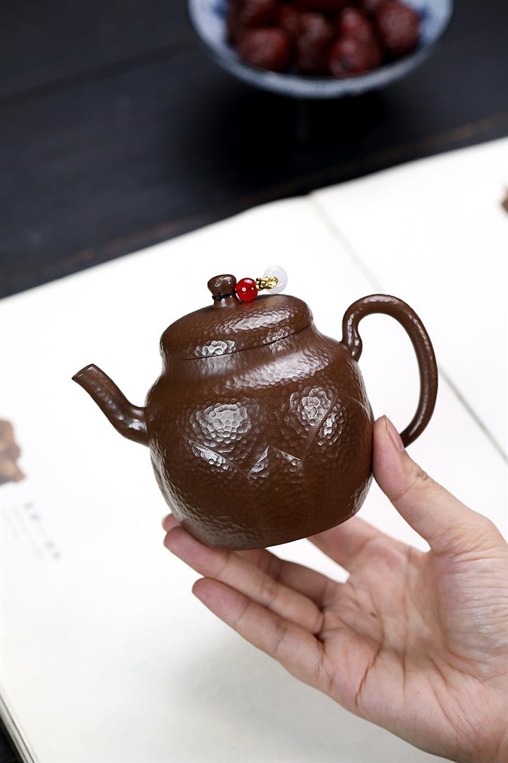 250cc原礦赤金朱泥石紋蓮花泡茶壺POT9127