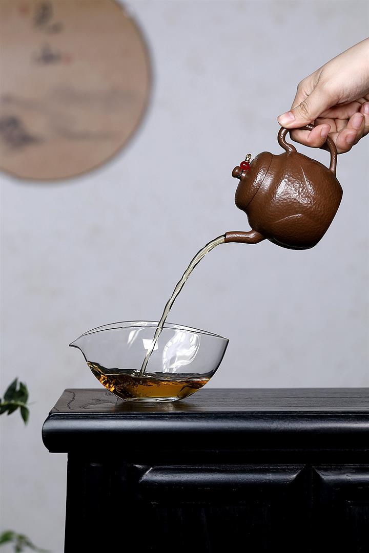 【泥料特點】砂土氣重,似淳實農民,日久使用,漸露鋒芒,養成變化,溫潤莊重。紫砂是壹種雙重氣孔結構的多孔性材質,氣孔微細,密度高。用紫砂壺沏茶,不失原味,且香不渙散,得茶之真香真味。紫砂使用越久,壺身色澤越發光亮照人,氣韻溫雅。紫砂壺長久使用器身會因撫摸擦拭,變得越發溫潤光澤。