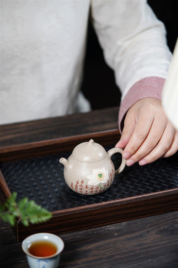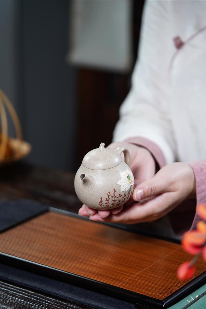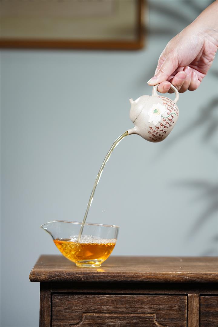 【泥料特點】砂土氣重,似淳實農民,日久使用,漸露鋒芒,養成變化,溫潤莊重。紫砂是壹種雙重氣孔結構的多孔性材質,氣孔微細,密度高。用紫砂壺沏茶,不失原味,且香不渙散,得茶之真香真味。紫砂使用越久,壺身色澤越發光亮照人,氣韻溫雅。紫砂壺長久使用器身會因撫摸擦拭,變得越發溫潤光澤。