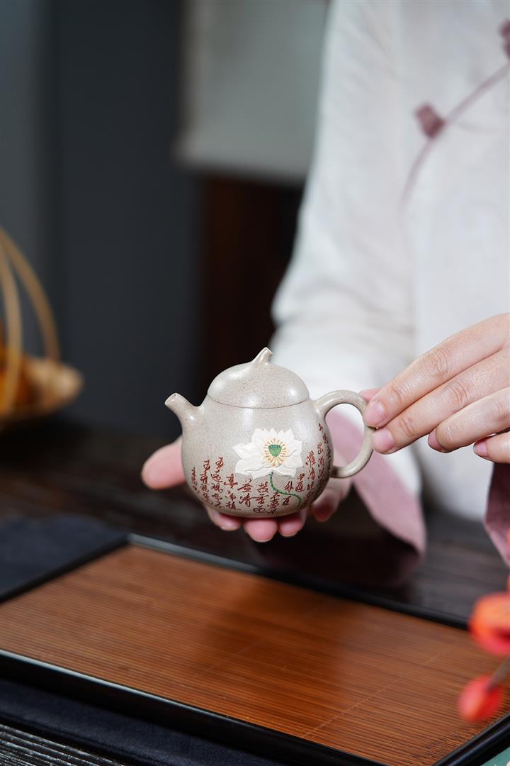 【作品介紹】此款壺形線條流暢,壺把,壺嘴,壺身壹氣呵成栩栩如生,是收藏把玩的好壺,泥料色澤古樸典雅,日久使用,漸露鋒芒,養成變化快,溫潤莊重,用其泡茶,使用的年代久,壺身就溫潤,泡出來的茶湯也就醇郁芳馨。