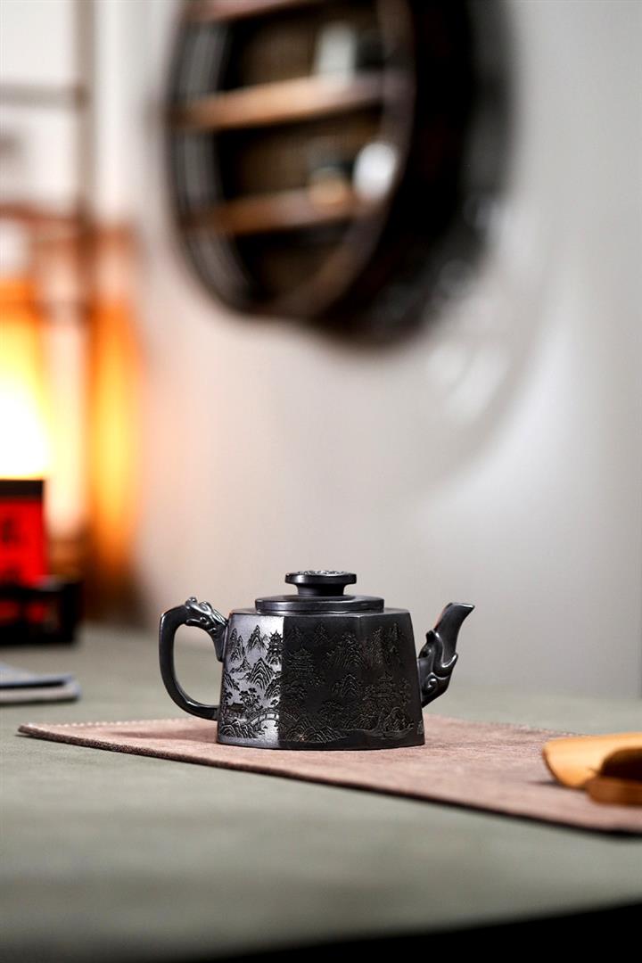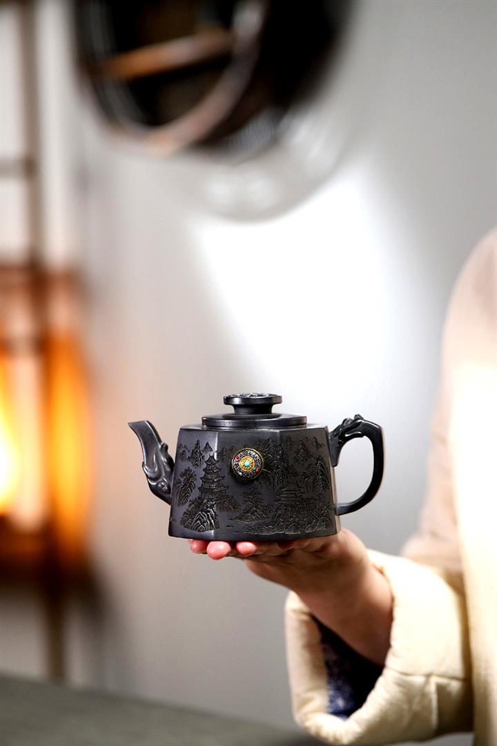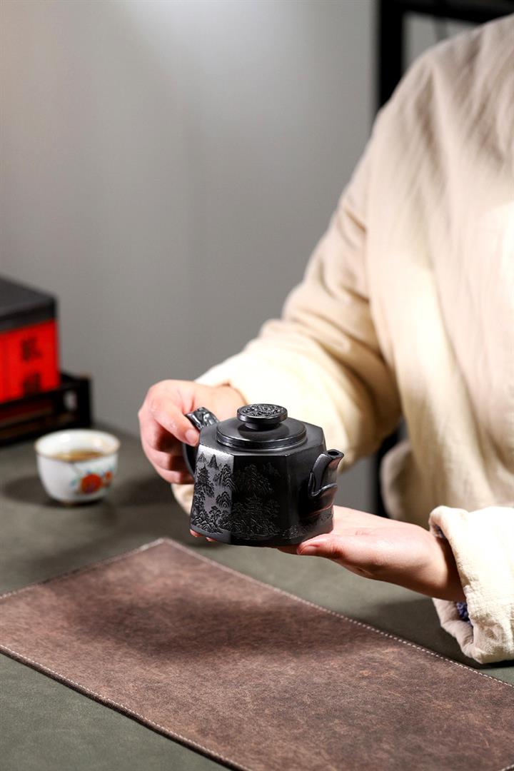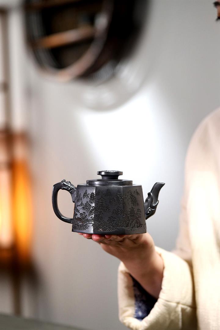 【作品介紹】此款壺形線條流暢,壺把,壺嘴,壺身壹氣呵成栩栩如生,是收藏把玩的好壺,泥料色澤古樸典雅,日久使用,漸露鋒芒,養成變化快,溫潤莊重,用其泡茶,使用的年代久,壺身就溫潤,泡出來的茶湯也就醇郁芳馨。