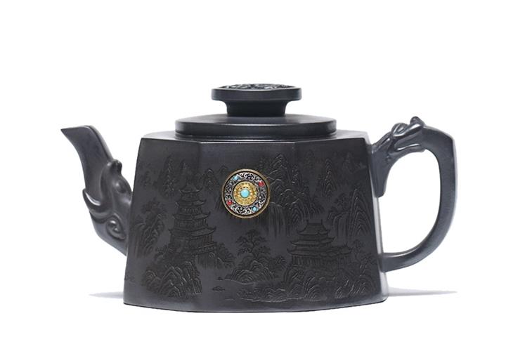 龍窯段泥柴燒雙龍戲珠紫砂壺POT5561