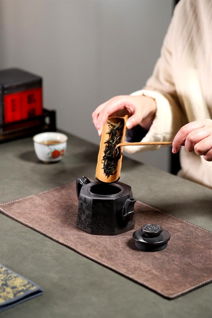 【泥料特點】砂土氣重,似淳實農民,日久使用,漸露鋒芒,養成變化,溫潤莊重。紫砂是壹種雙重氣孔結構的多孔性材質,氣孔微細,密度高。用紫砂壺沏茶,不失原味,且香不渙散,得茶之真香真味。紫砂使用越久,壺身色澤越發光亮照人,氣韻溫雅。紫砂壺長久使用器身會因撫摸擦拭,變得越發溫潤光澤。