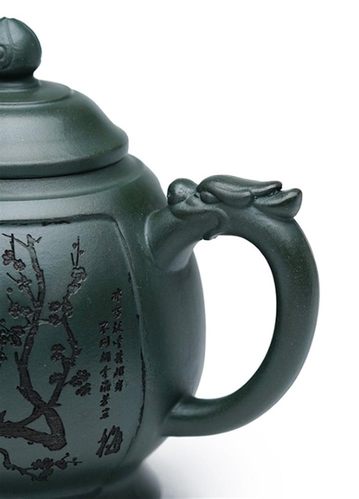 【泥料特點】砂土氣重,似淳實農民,日久使用,漸露鋒芒,養成變化,溫潤莊重。紫砂是壹種雙重氣孔結構的多孔性材質,氣孔微細,密度高。用紫砂壺沏茶,不失原味,且香不渙散,得茶之真香真味。紫砂使用越久,壺身色澤越發光亮照人,氣韻溫雅。紫砂壺長久使用器身會因撫摸擦拭,變得越發溫潤光澤。
