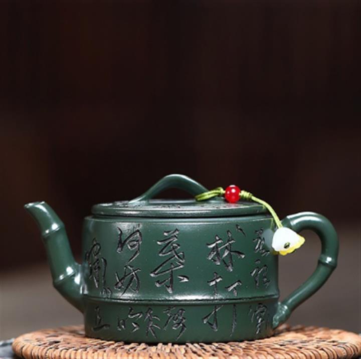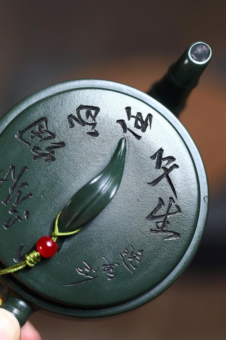 150cc原礦綠泥雙刀刻繪文心漢瓦茶壺POT9151