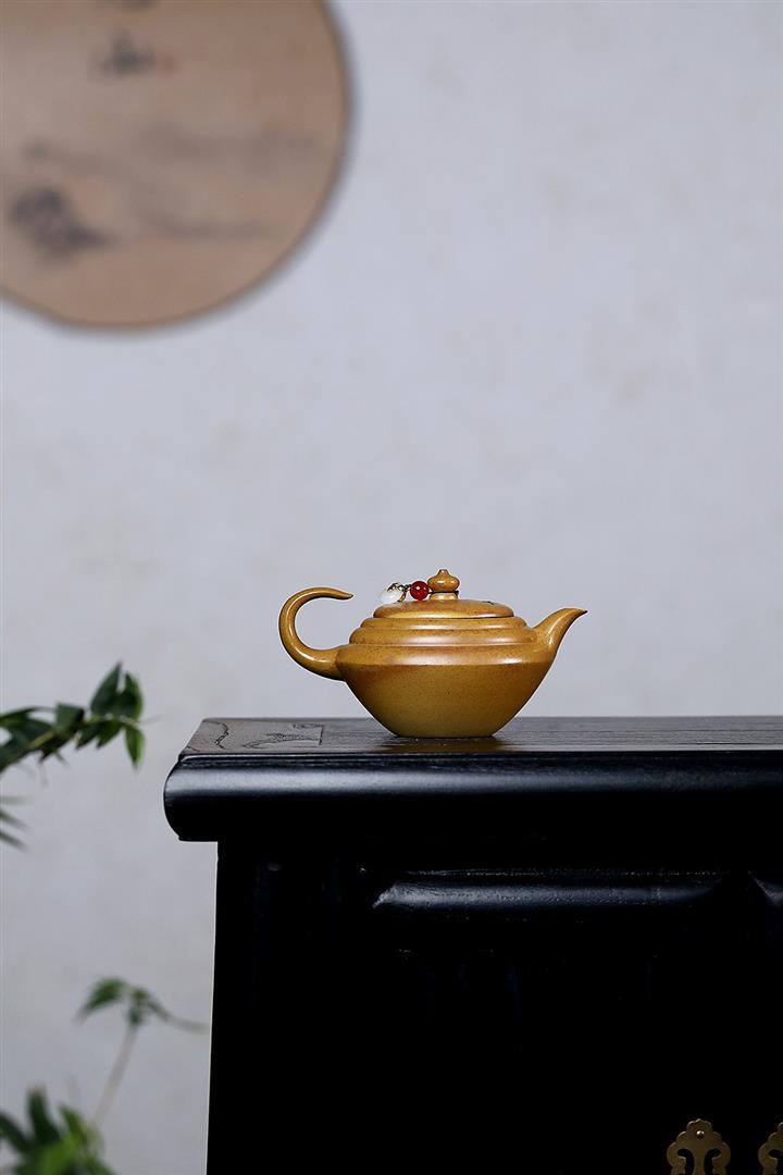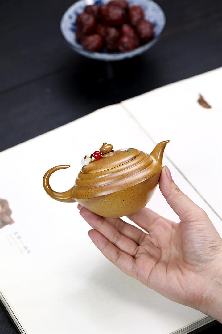 【作品介紹】此款壺形線條流暢,壺把,壺嘴,壺身壹氣呵成栩栩如生,是收藏把玩的好壺,泥料色澤古樸典雅,日久使用,漸露鋒芒,養成變化快,溫潤莊重,用其泡茶,使用的年代久,壺身就溫潤,泡出來的茶湯也就醇郁芳馨。