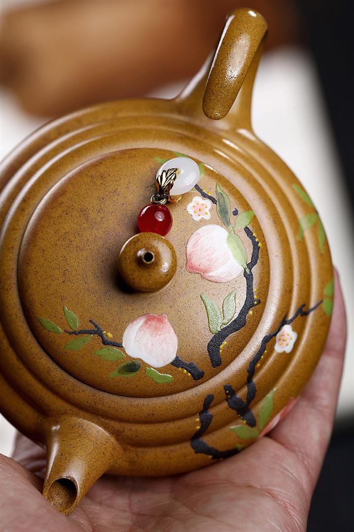 原礦赤龍血砂牡丹壽桃茶壺POT7052