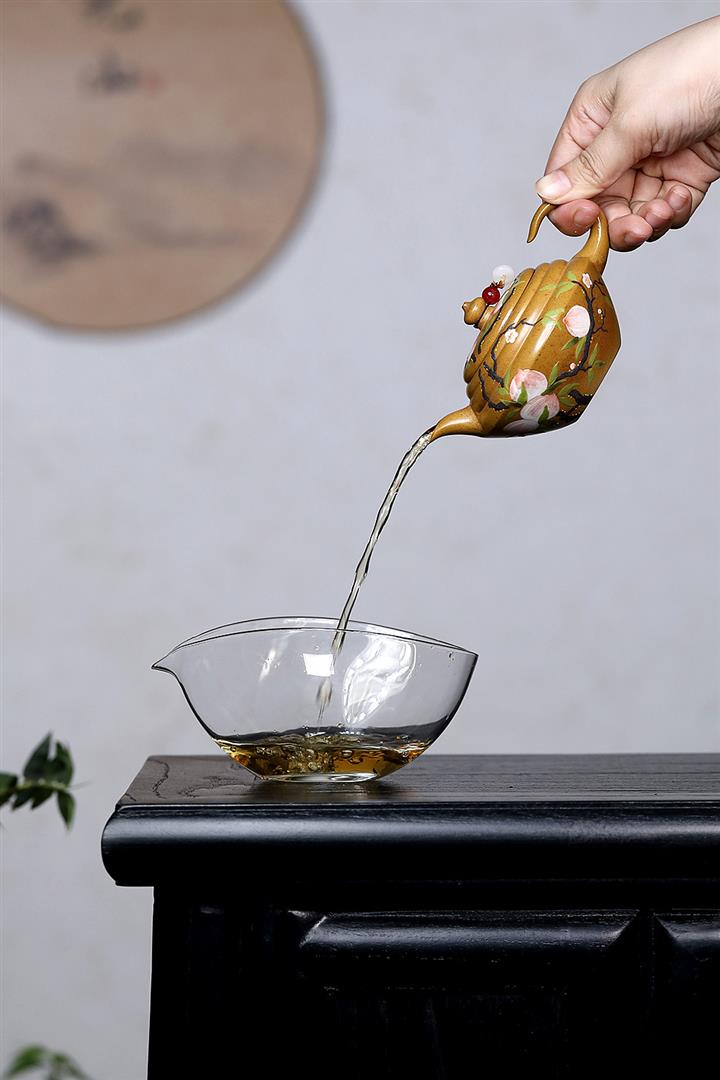 【泥料特點】砂土氣重,似淳實農民,日久使用,漸露鋒芒,養成變化,溫潤莊重。紫砂是壹種雙重氣孔結構的多孔性材質,氣孔微細,密度高。用紫砂壺沏茶,不失原味,且香不渙散,得茶之真香真味。紫砂使用越久,壺身色澤越發光亮照人,氣韻溫雅。紫砂壺長久使用器身會因撫摸擦拭,變得越發溫潤光澤。