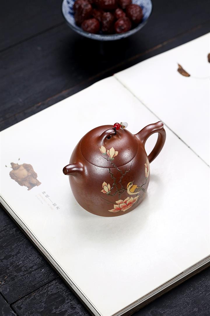 380cc原礦段泥火雲燒花鳥秦權茶壺POT9154