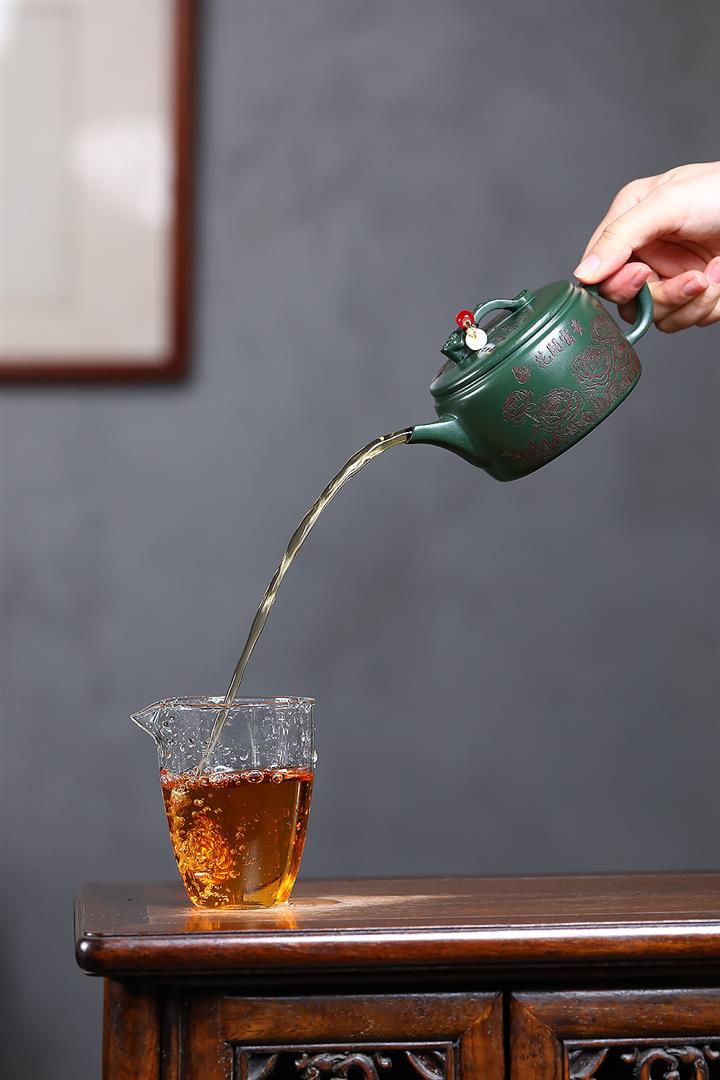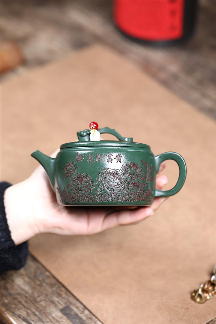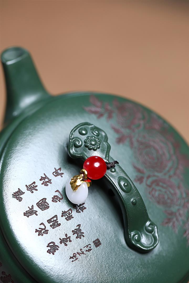 200cc原礦綠泥牡丹如意漢瓦泡茶壺POT9158