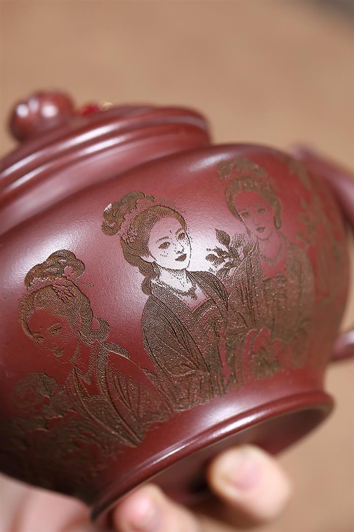 【作品介紹】此款壺形線條流暢,壺把,壺嘴,壺身壹氣呵成栩栩如生,是收藏把玩的好壺,泥料色澤古樸典雅,日久使用,漸露鋒芒,養成變化快,溫潤莊重,用其泡茶,使用的年代久,壺身就溫潤,泡出來的茶湯也就醇郁芳馨。