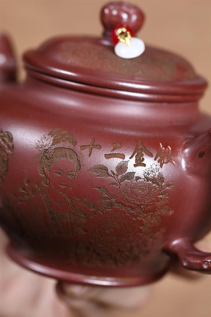 330cc原礦龍血砂金釵報春泡茶壺POT9162