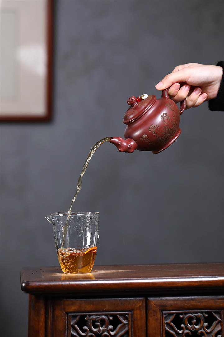 【泥料特點】砂土氣重,似淳實農民,日久使用,漸露鋒芒,養成變化,溫潤莊重。紫砂是壹種雙重氣孔結構的多孔性材質,氣孔微細,密度高。用紫砂壺沏茶,不失原味,且香不渙散,得茶之真香真味。紫砂使用越久,壺身色澤越發光亮照人,氣韻溫雅。紫砂壺長久使用器身會因撫摸擦拭,變得越發溫潤光澤。