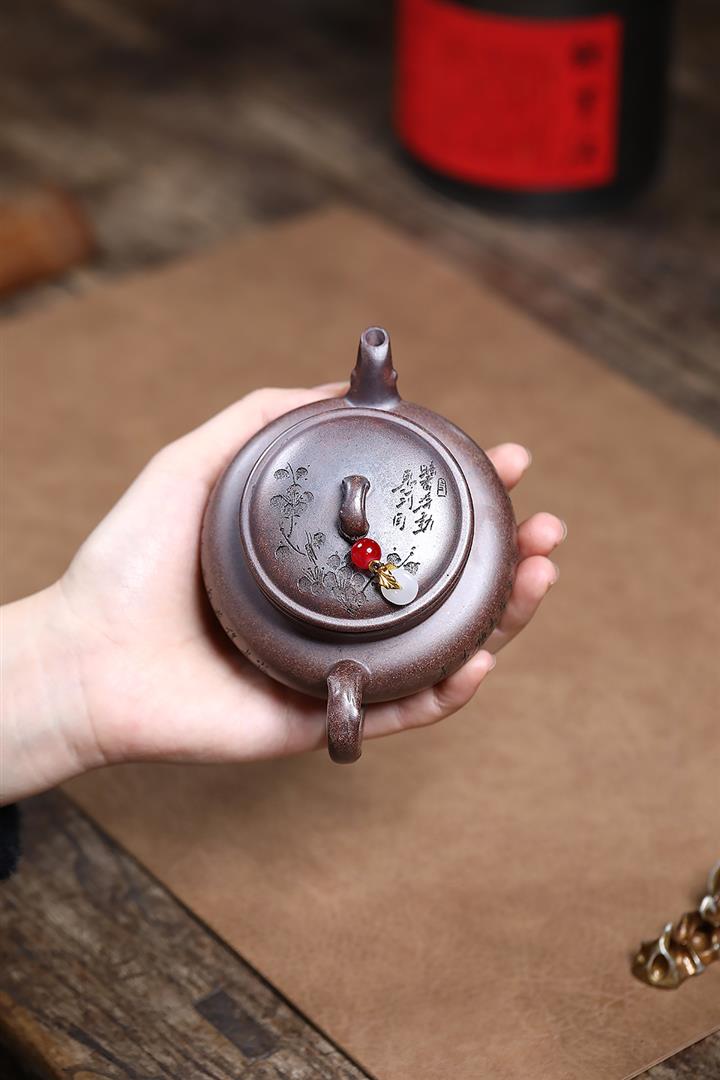【泥料特點】砂土氣重,似淳實農民,日久使用,漸露鋒芒,養成變化,溫潤莊重。紫砂是壹種雙重氣孔結構的多孔性材質,氣孔微細,密度高。用紫砂壺沏茶,不失原味,且香不渙散,得茶之真香真味。紫砂使用越久,壺身色澤越發光亮照人,氣韻溫雅。紫砂壺長久使用器身會因撫摸擦拭,變得越發溫潤光澤。