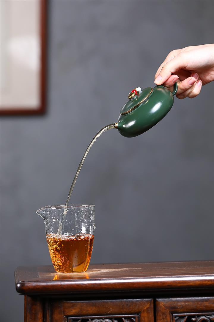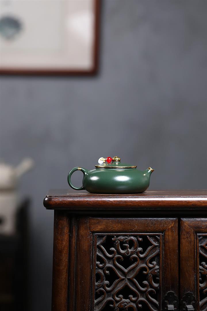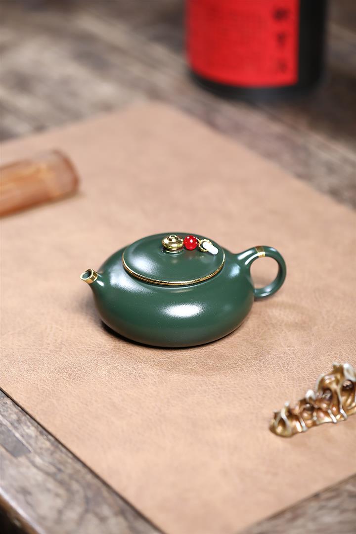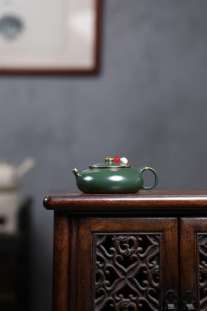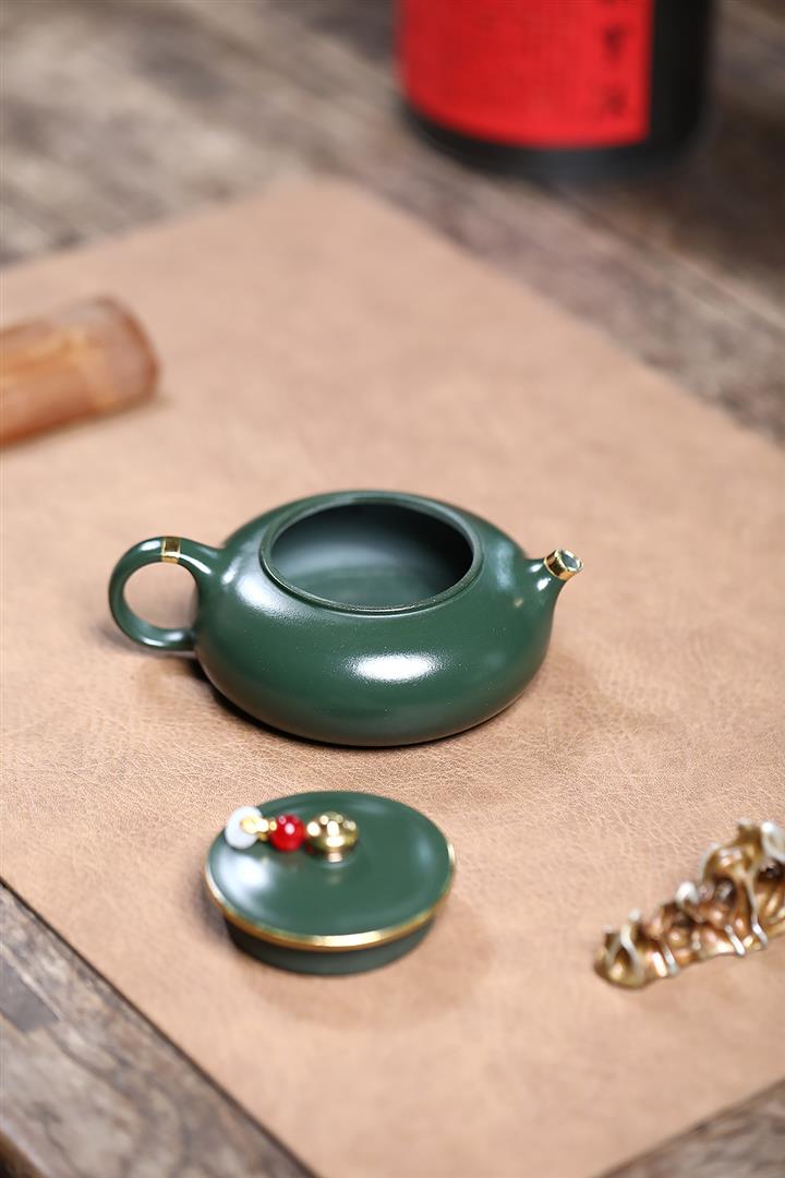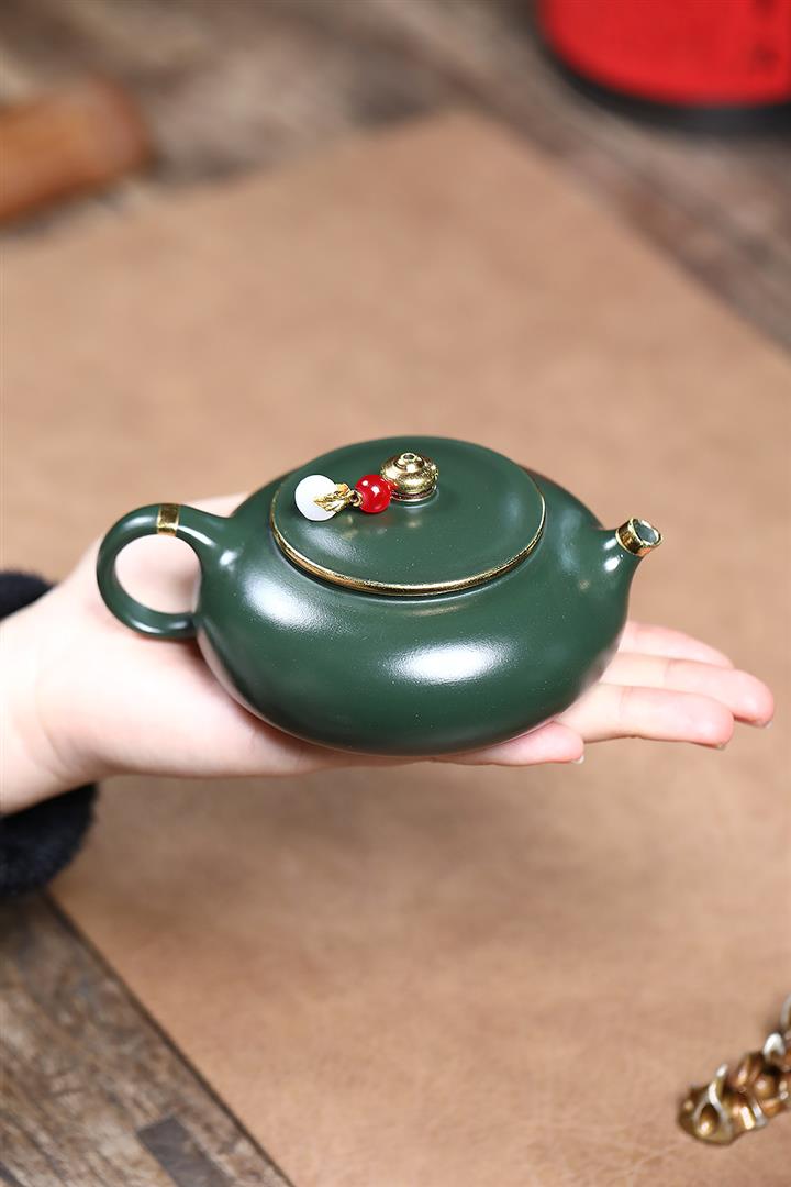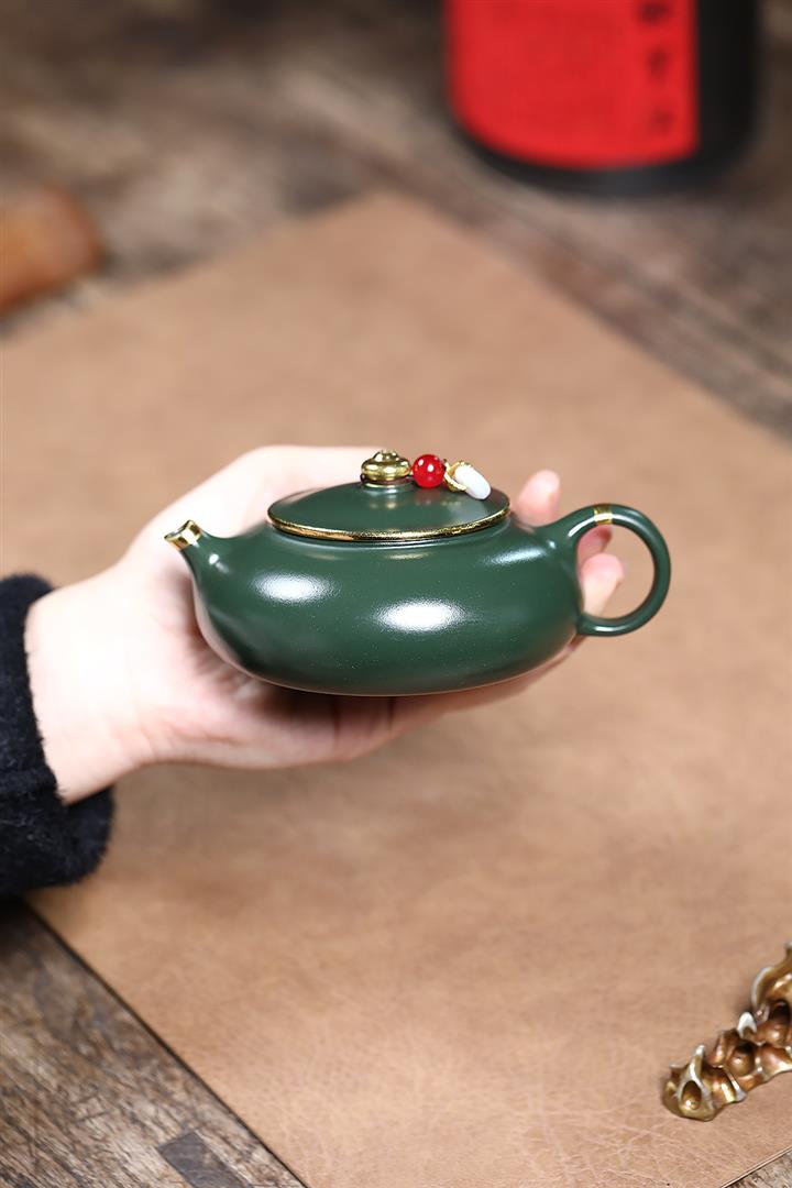 170cc原礦綠泥描金寒江泡茶壺POT9166