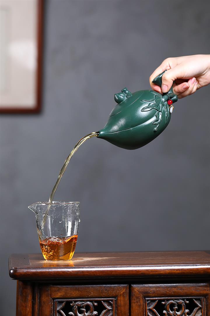 480cc原礦墨綠泥唐羽壽桃泡茶壺POT9167