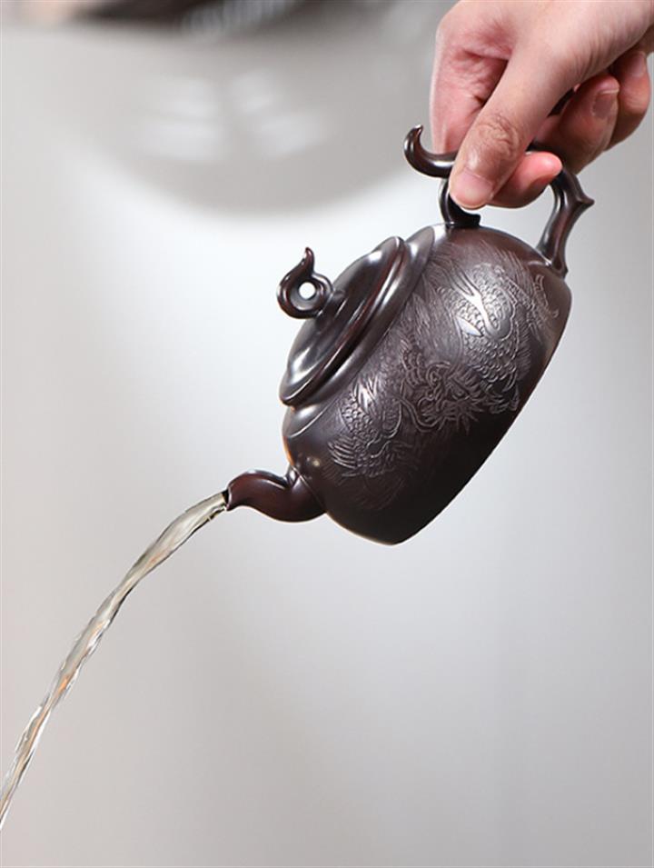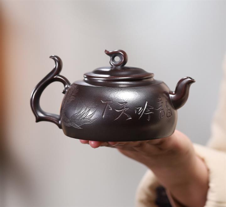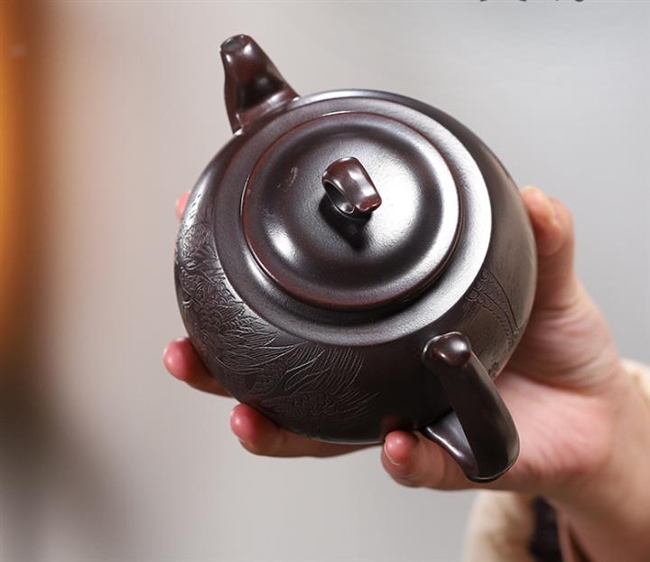 【作品介紹】此款壺形線條流暢,壺把,壺嘴,壺身壹氣呵成栩栩如生,是收藏把玩的好壺,泥料色澤古樸典雅,日久使用,漸露鋒芒,養成變化快,溫潤莊重,用其泡茶,使用的年代久,壺身就溫潤,泡出來的茶湯也就醇郁芳馨。