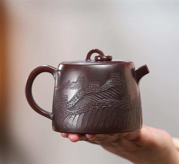 【作品介紹】此款壺形線條流暢,壺把,壺嘴,壺身壹氣呵成栩栩如生,是收藏把玩的好壺,泥料色澤古樸典雅,日久使用,漸露鋒芒,養成變化快,溫潤莊重,用其泡茶,使用的年代久,壺身就溫潤,泡出來的茶湯也就醇郁芳馨。