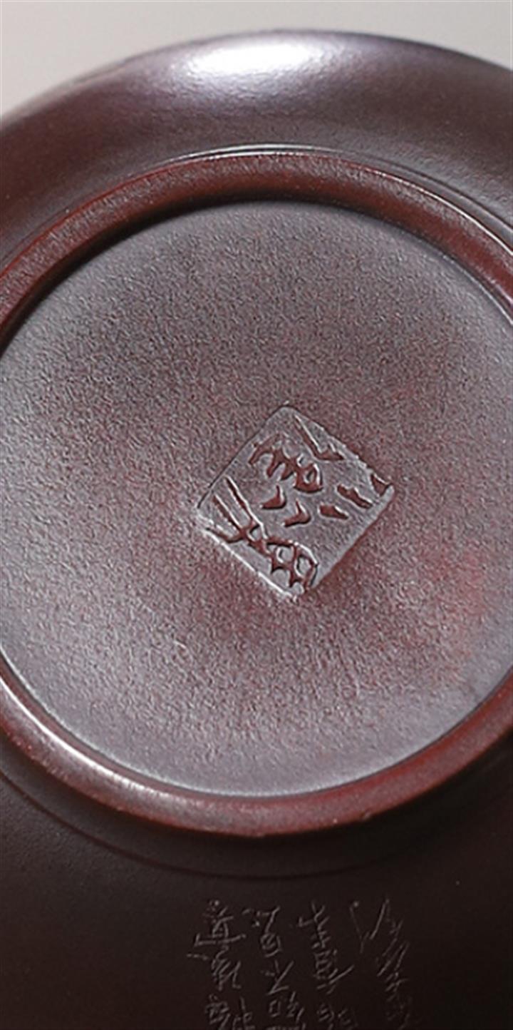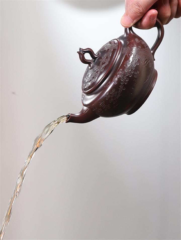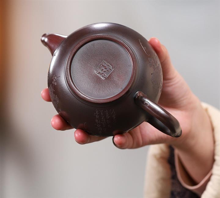 【泥料特點】砂土氣重,似淳實農民,日久使用,漸露鋒芒,養成變化,溫潤莊重。紫砂是壹種雙重氣孔結構的多孔性材質,氣孔微細,密度高。用紫砂壺沏茶,不失原味,且香不渙散,得茶之真香真味。紫砂使用越久,壺身色澤越發光亮照人,氣韻溫雅。紫砂壺長久使用器身會因撫摸擦拭,變得越發溫潤光澤。