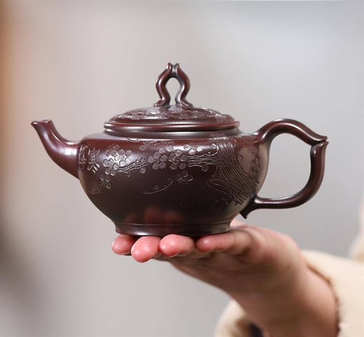 【作品介紹】此款壺形線條流暢,壺把,壺嘴,壺身壹氣呵成栩栩如生,是收藏把玩的好壺,泥料色澤古樸典雅,日久使用,漸露鋒芒,養成變化快,溫潤莊重,用其泡茶,使用的年代久,壺身就溫潤,泡出來的茶湯也就醇郁芳馨。