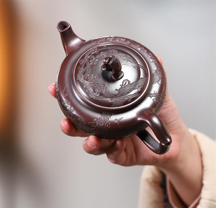 紫泥高溫柴燒漢瓦紫砂壺POT5530
