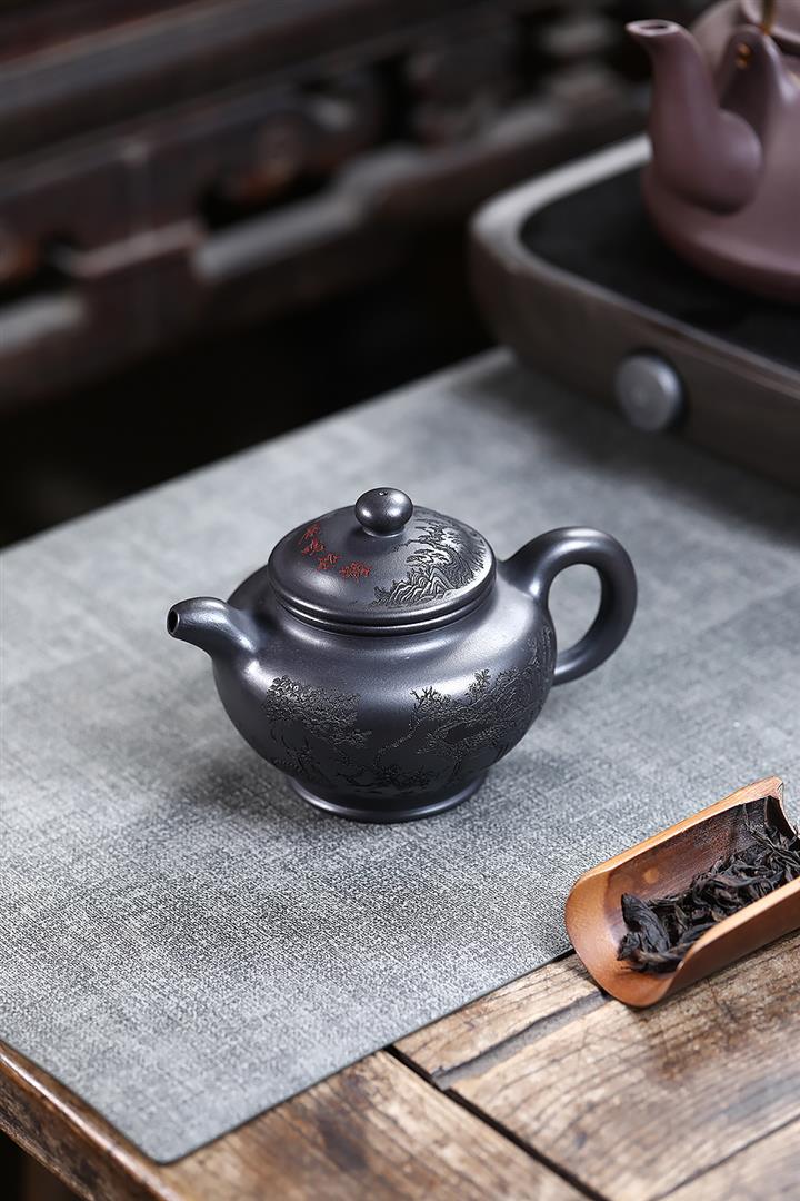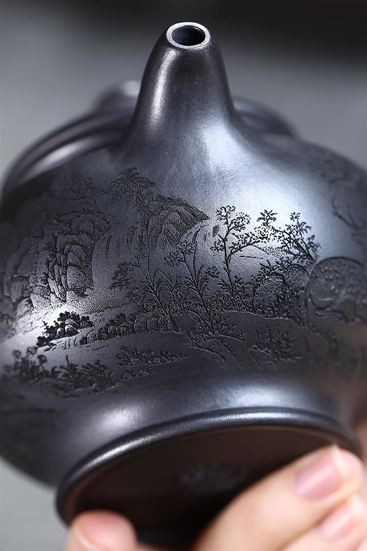 330cc原礦玄鐵石黃鹿鳴松鶴掇只茶壺POT9190