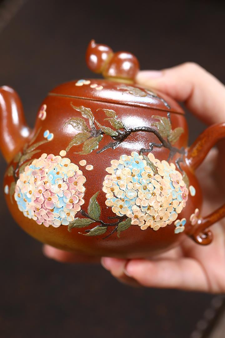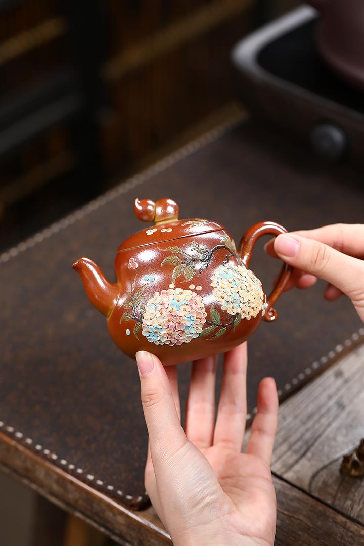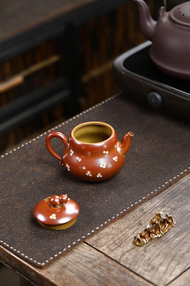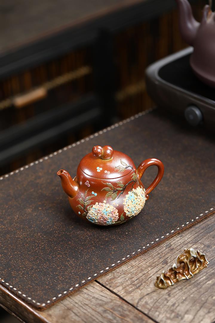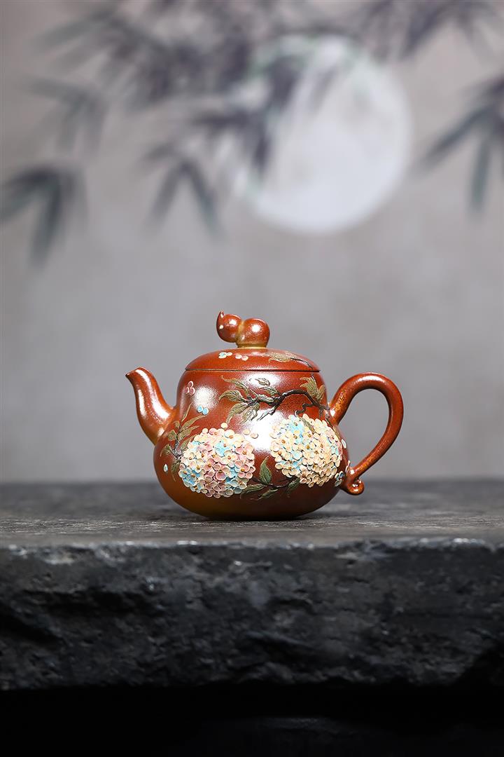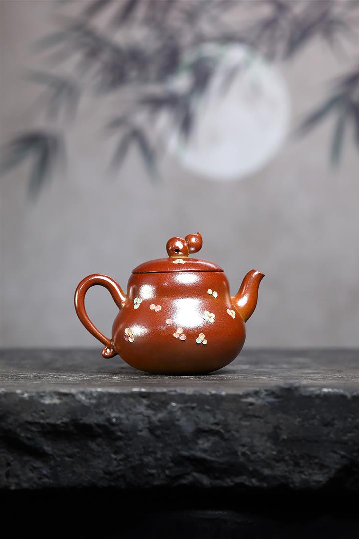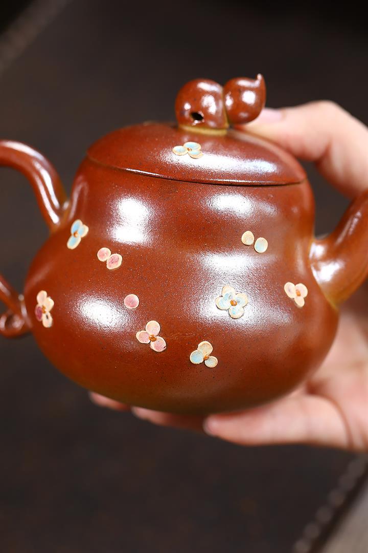原礦紅降坡滿刻松鼠漢瓦茶壺POT7163