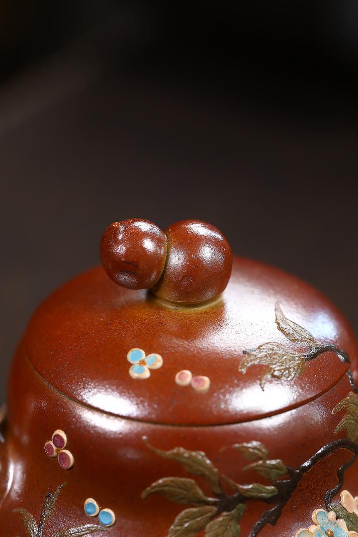 原礦紅降坡滿刻筋紋笑櫻茶壺POT7160