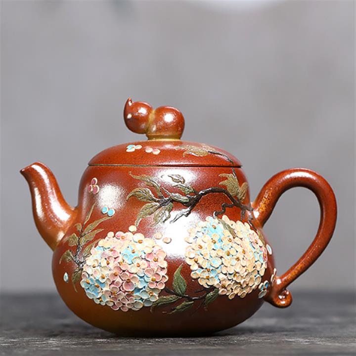 250cc原礦段泥火雲燒繁花葫蘆茶壺POT9192