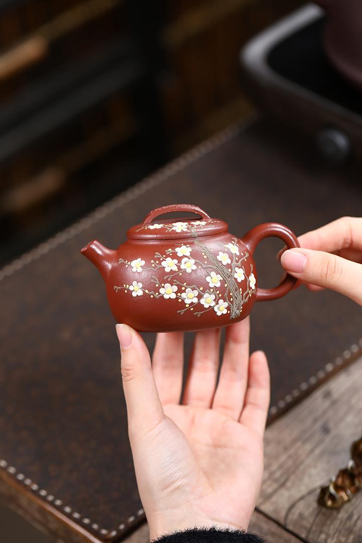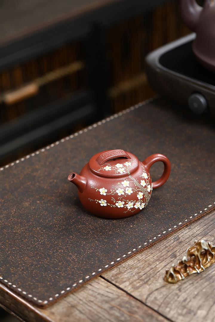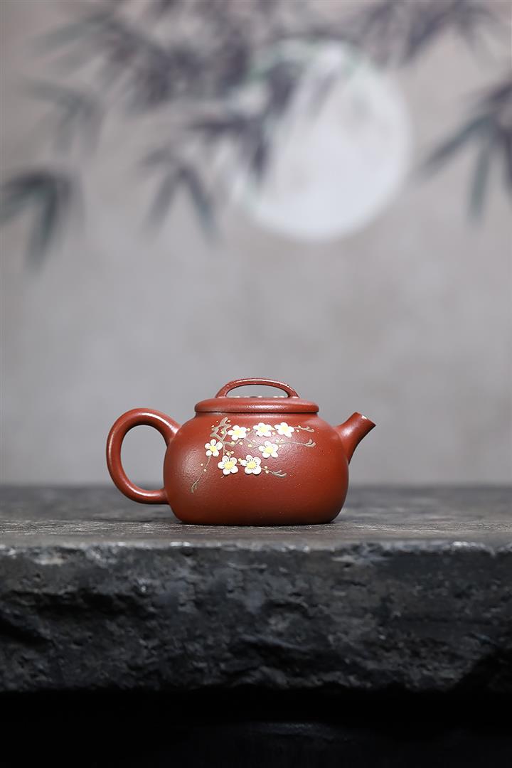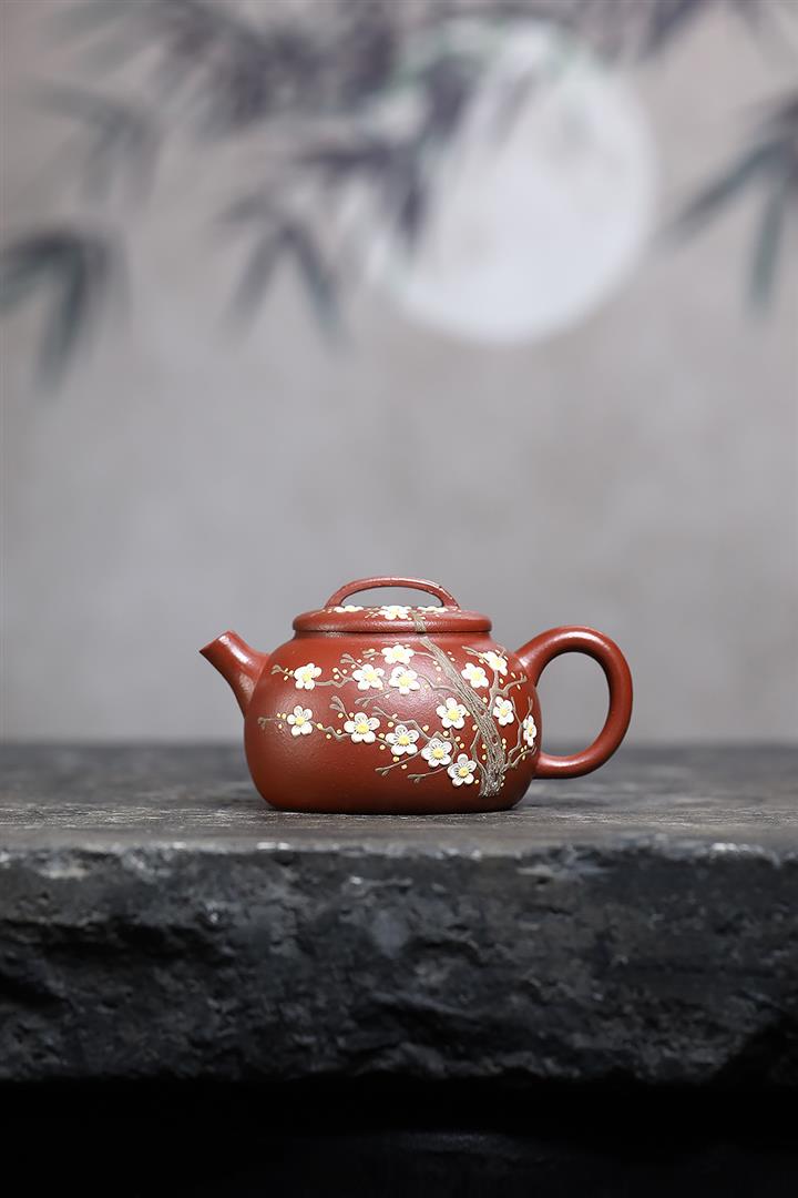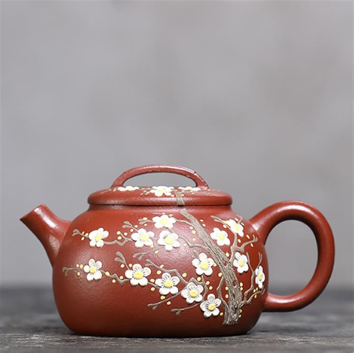 190cc原礦紅降坡傲梅圓瓦茶壺POT9193