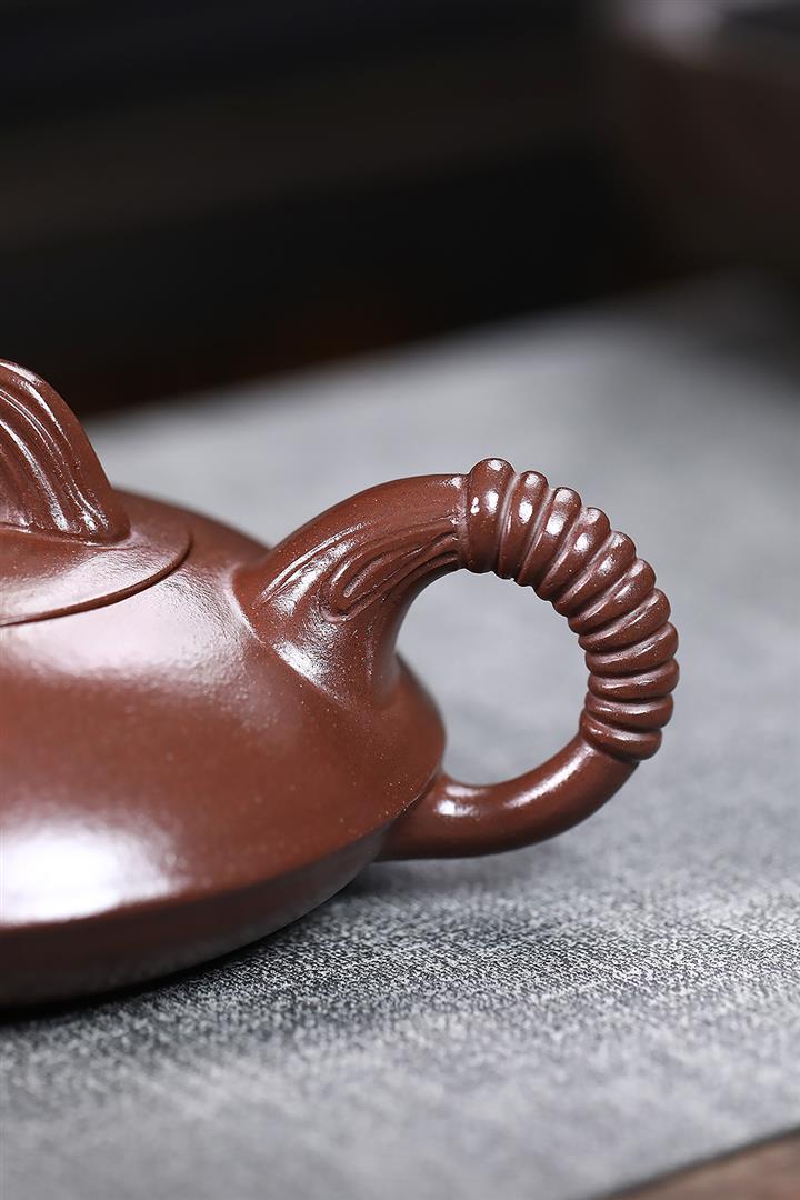 【作品介紹】此款壺形線條流暢,壺把,壺嘴,壺身壹氣呵成栩栩如生,是收藏把玩的好壺,泥料色澤古樸典雅,日久使用,漸露鋒芒,養成變化快,溫潤莊重,用其泡茶,使用的年代久,壺身就溫潤,泡出來的茶湯也就醇郁芳馨。