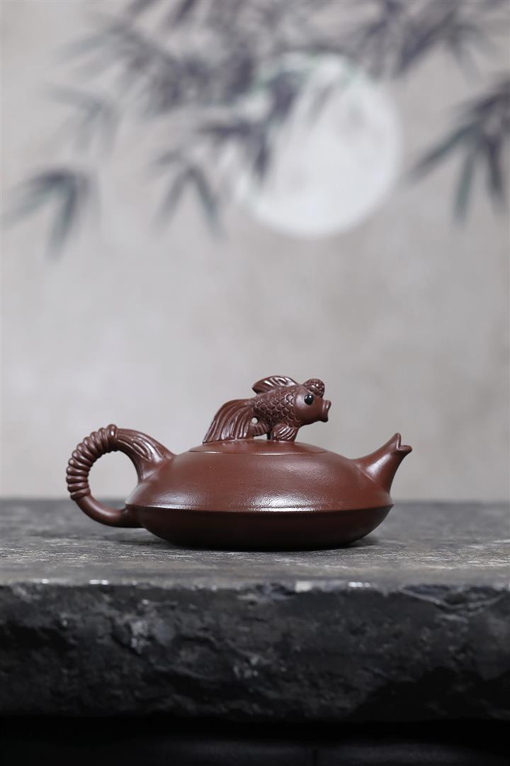 370cc原礦紫泥魚趣線瓢茶壺POT9204