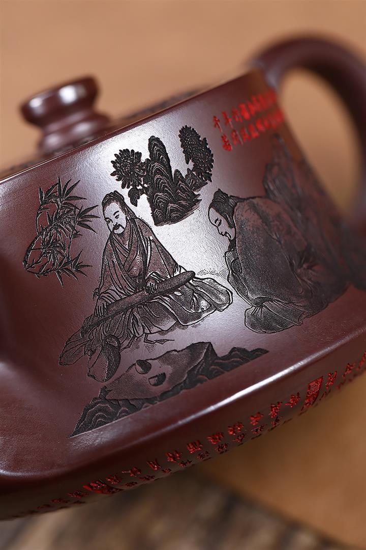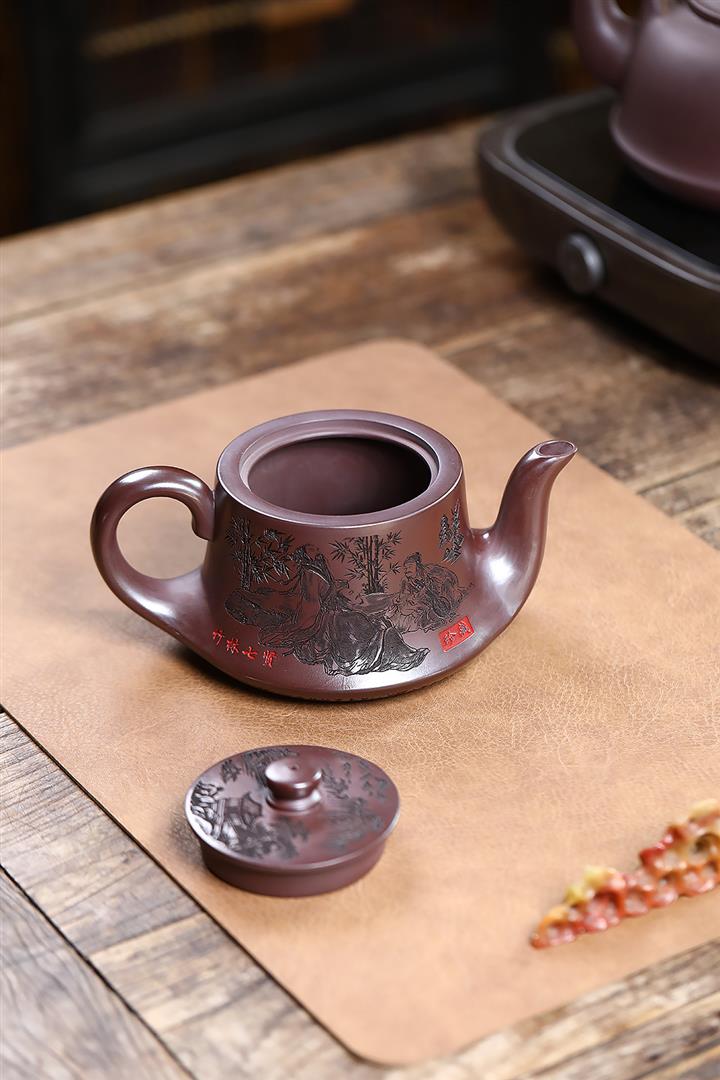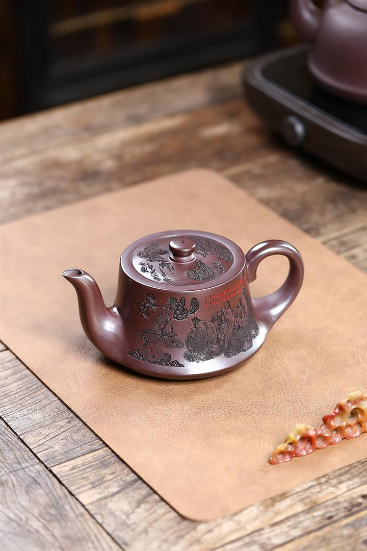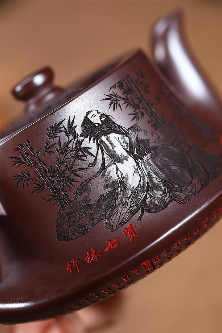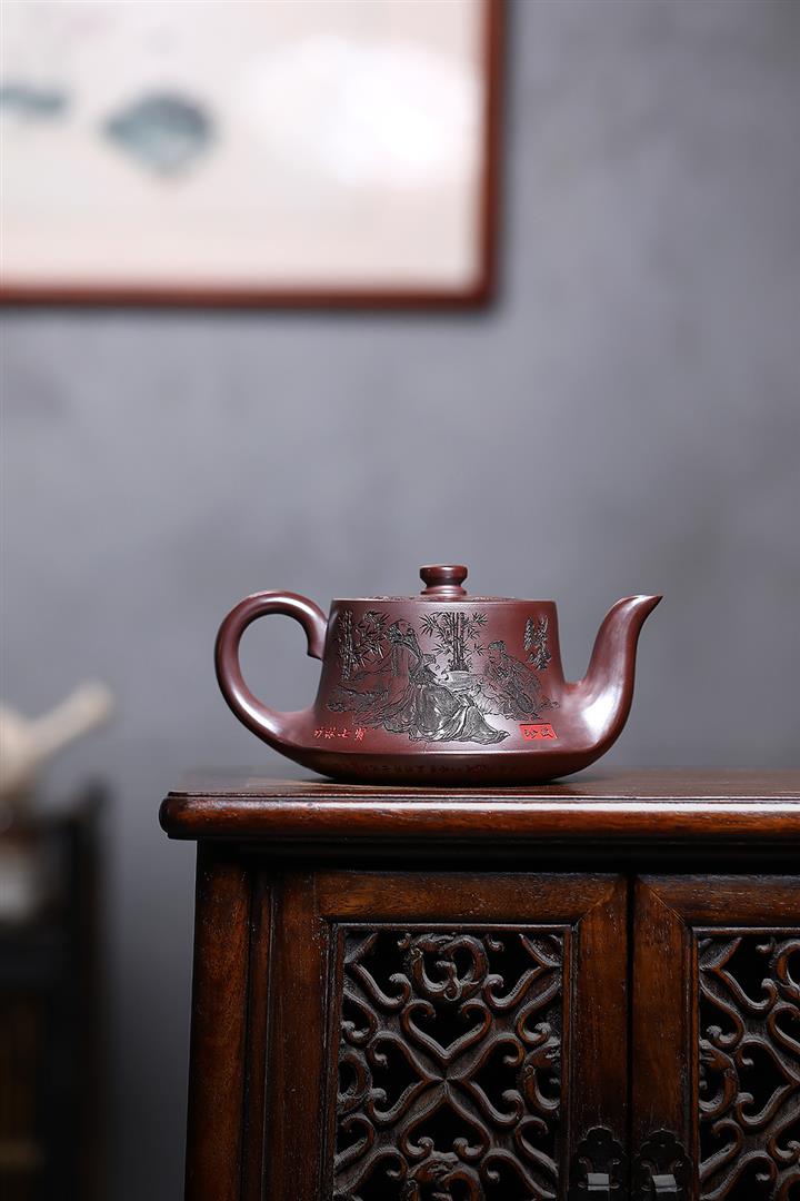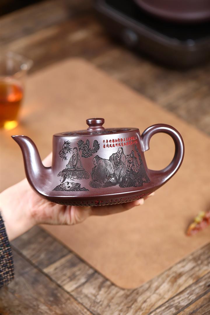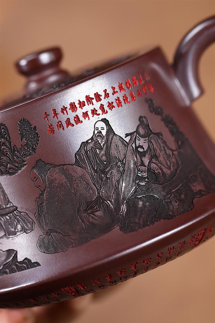520cc原礦石紅竹林七賢曲壺泡茶壺POT9212