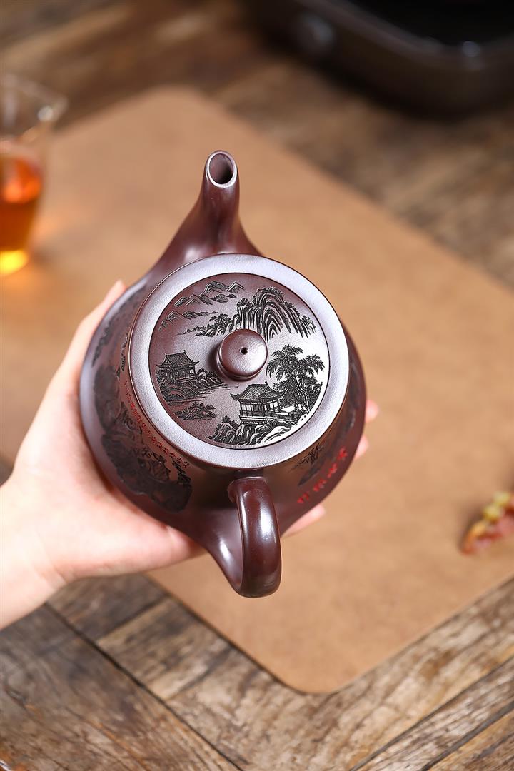 280cc原礦古烏泥刻繪般若禪韻飛把茶壺POT9197
