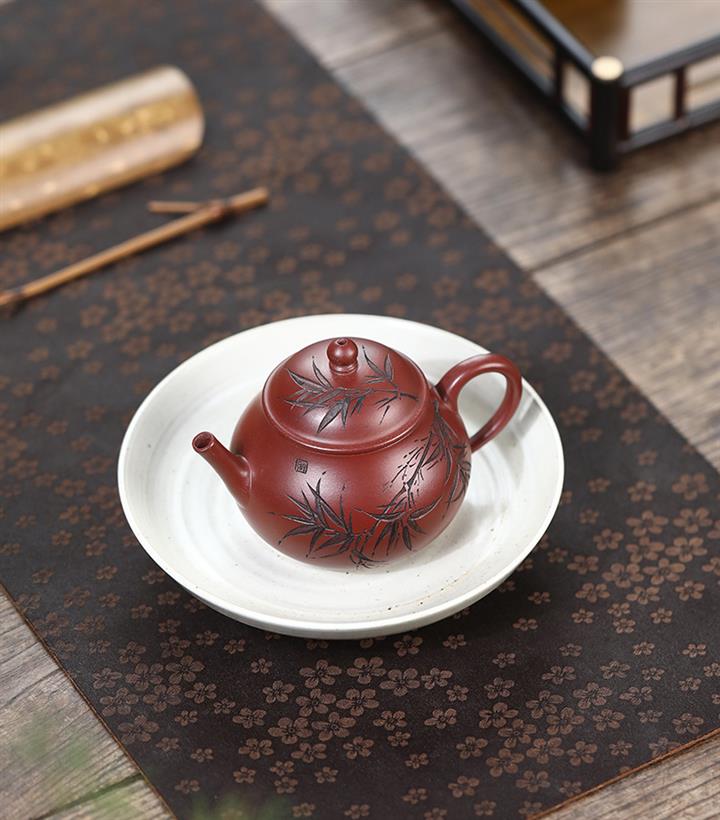 【泥料特點】砂土氣重,似淳實農民,日久使用,漸露鋒芒,養成變化,溫潤莊重。紫砂是壹種雙重氣孔結構的多孔性材質,氣孔微細,密度高。用紫砂壺沏茶,不失原味,且香不渙散,得茶之真香真味。紫砂使用越久,壺身色澤越發光亮照人,氣韻溫雅。紫砂壺長久使用器身會因撫摸擦拭,變得越發溫潤光澤。