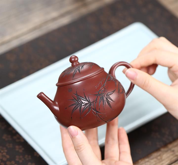 【作品介紹】此款壺形線條流暢,壺把,壺嘴,壺身壹氣呵成栩栩如生,是收藏把玩的好壺,泥料色澤古樸典雅,日久使用,漸露鋒芒,養成變化快,溫潤莊重,用其泡茶,使用的年代久,壺身就溫潤,泡出來的茶湯也就醇郁芳馨。